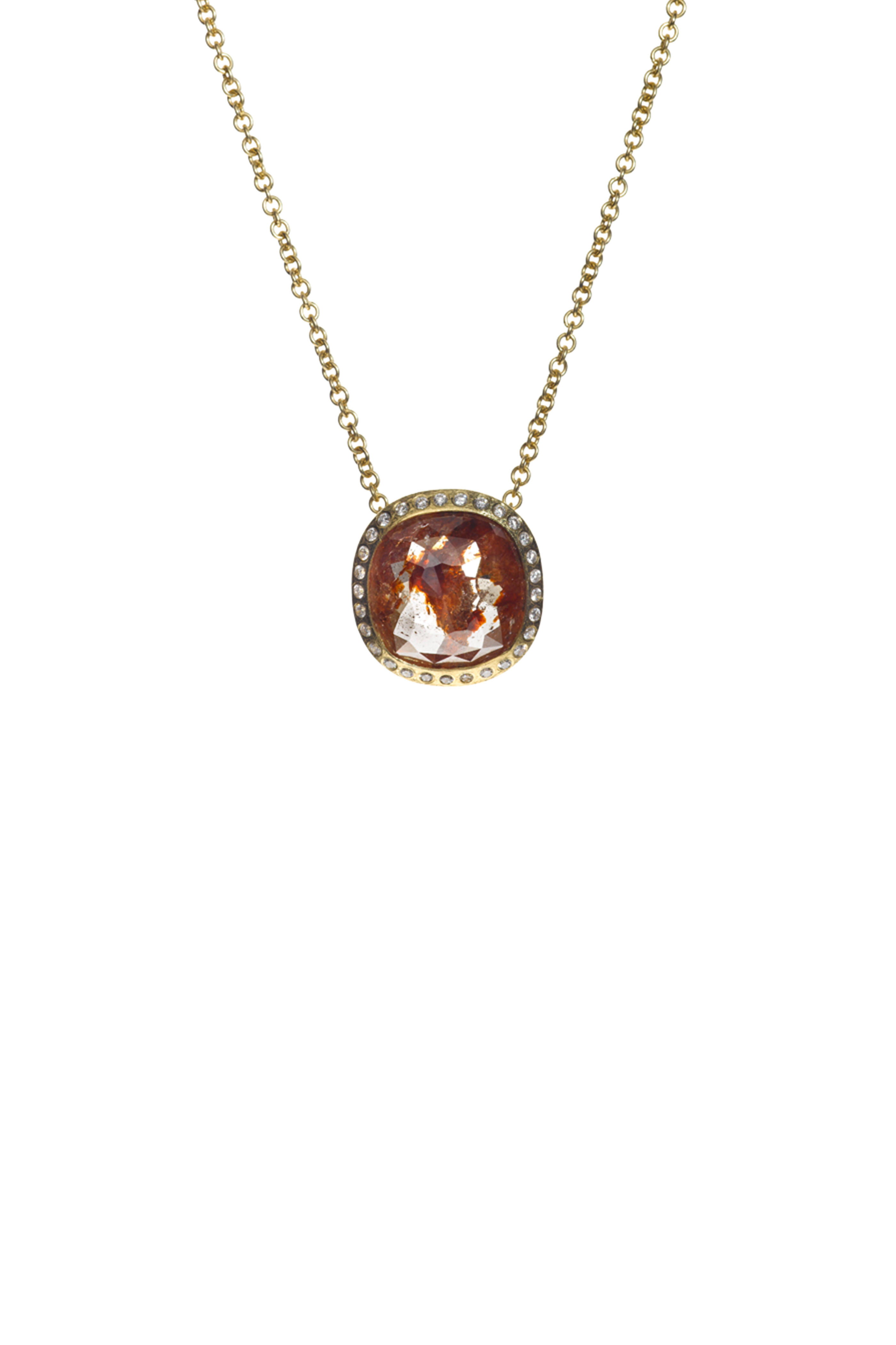 Yellow gold. Fancy red diamond, 11.71 total carat weight. White brilliant cut diamonds, 0.3625 total carat weight. Raw diamonds, 0.10 total carat weight.