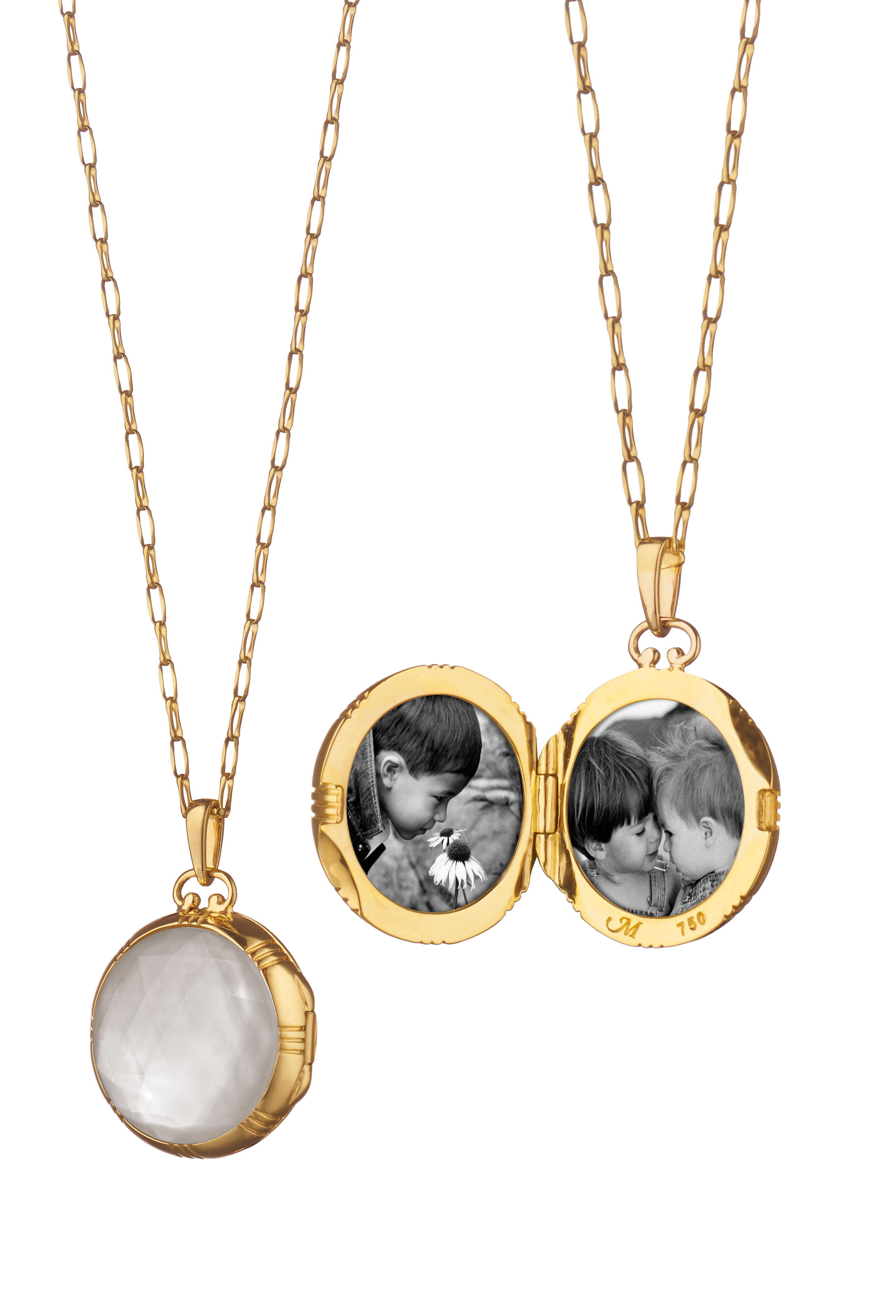 Gold Mother Of Pearl Rock Crystal Locket Necklace
