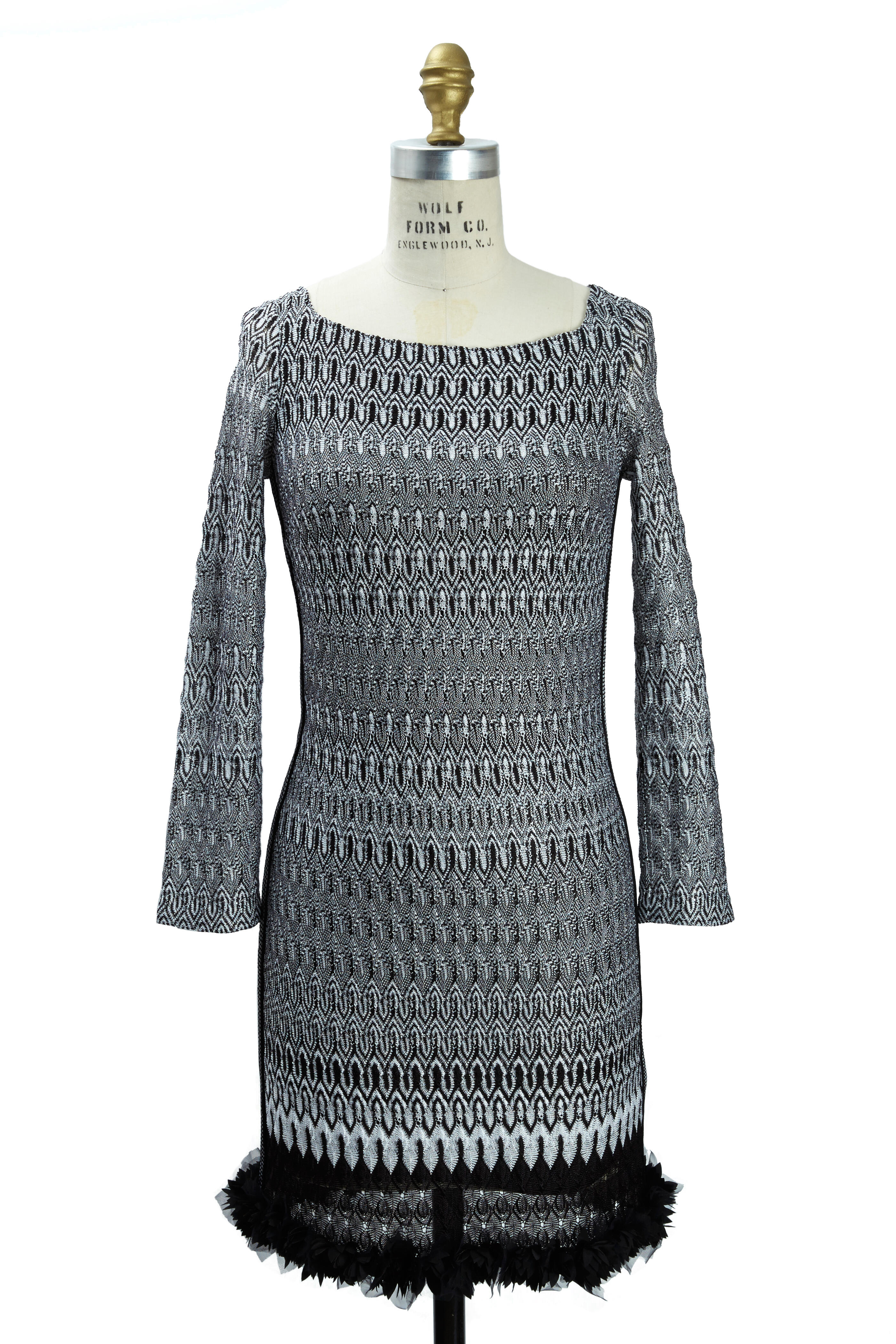 A signature knit by Missoni gives chic style with a sheer hem adorned by a row of appliqué flowers. In viscose with a silken lining, the monochrome color palette is an effortless after-dark look.