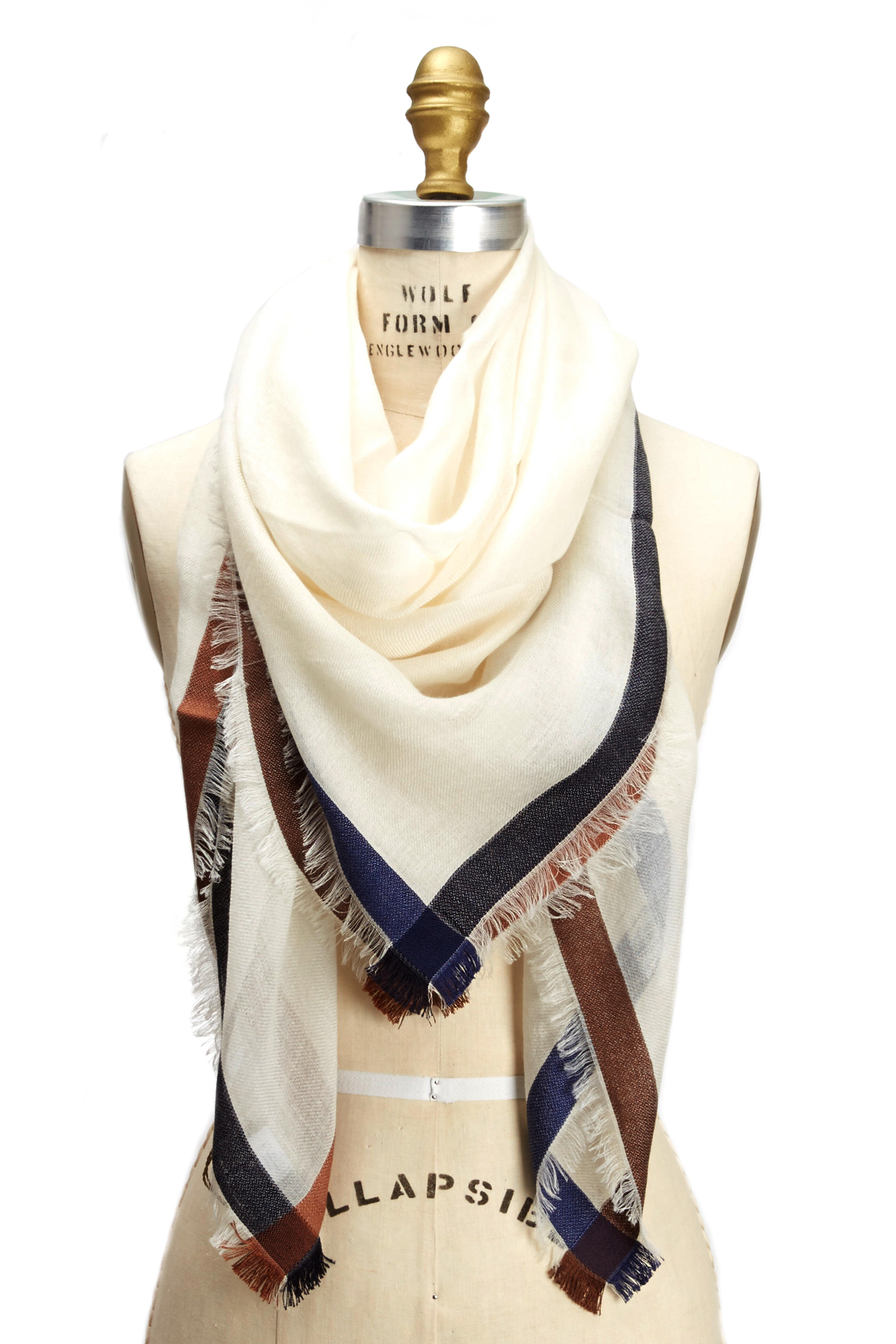 Rainbow White, Brown & Navy Blue Soffia Scarf