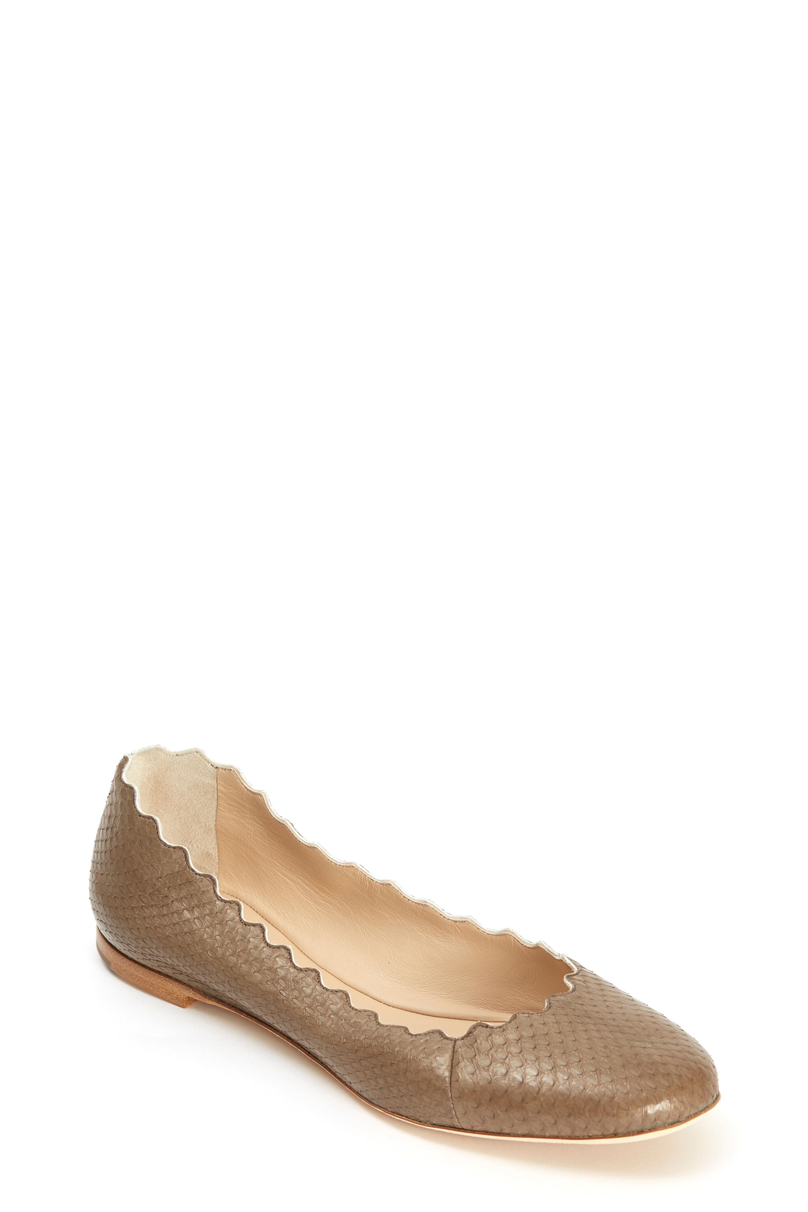 Lauren Taupe Snakeskin Scalloped Ballet Flat