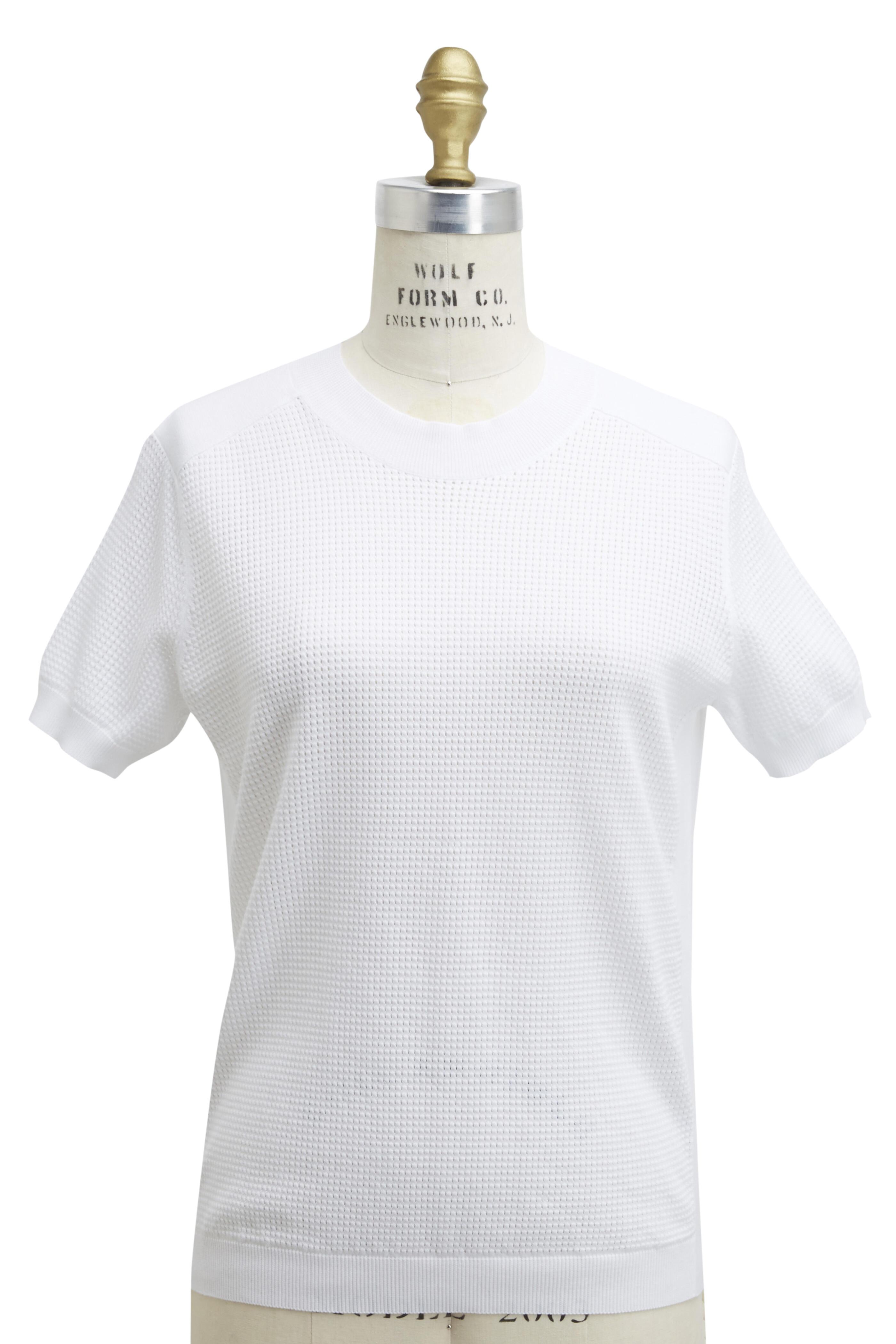 Serenely cool and fiercely white, Agnona's midweight mesh feels right for warmer weather.