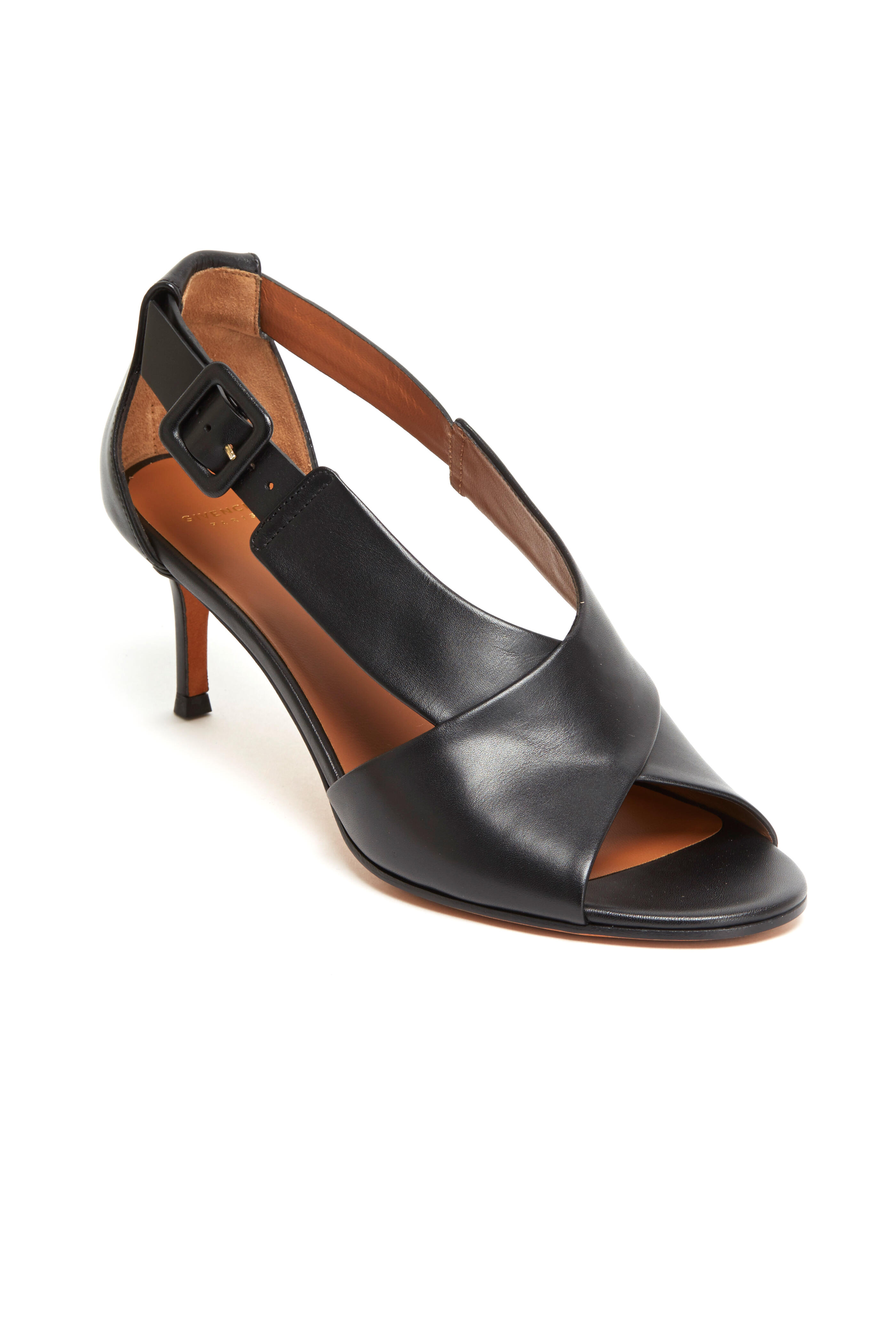 These sandals have wide crisscrossed straps of smooth black leather from Italy. One of the straps have an adjustable buckle to fit your personal preference. They are stacked with a thin heel and offer extreme comfort all day long.