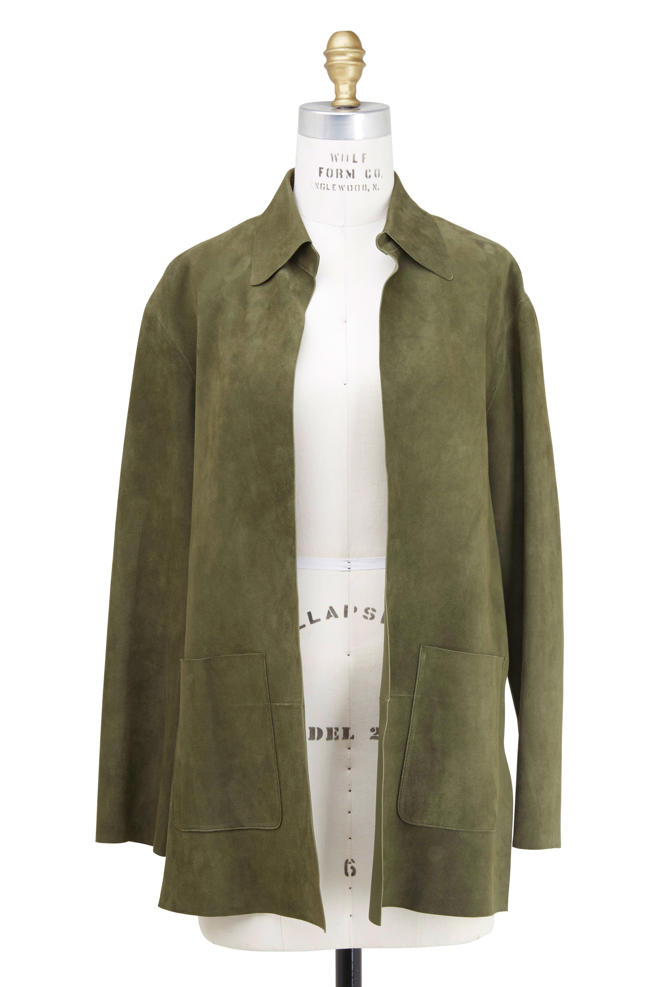 Ralph Lauren's sueded leather jacket is clean-cut and trim-free.