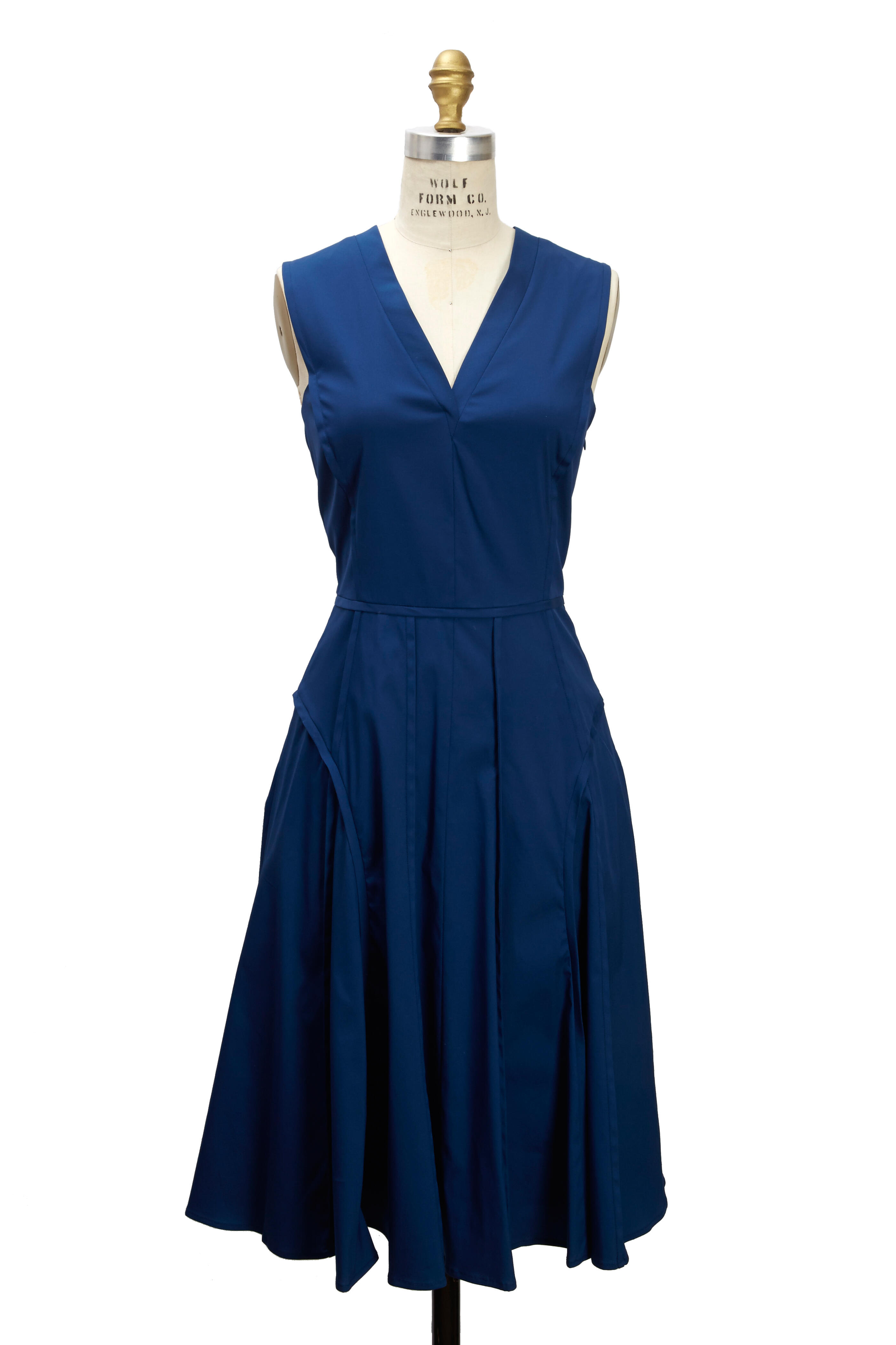 This gorgeous dress offers a feminine aesthetic with an effortless silhouette. It has a slim fit with a v-neckline and a lovely, full skirt.
