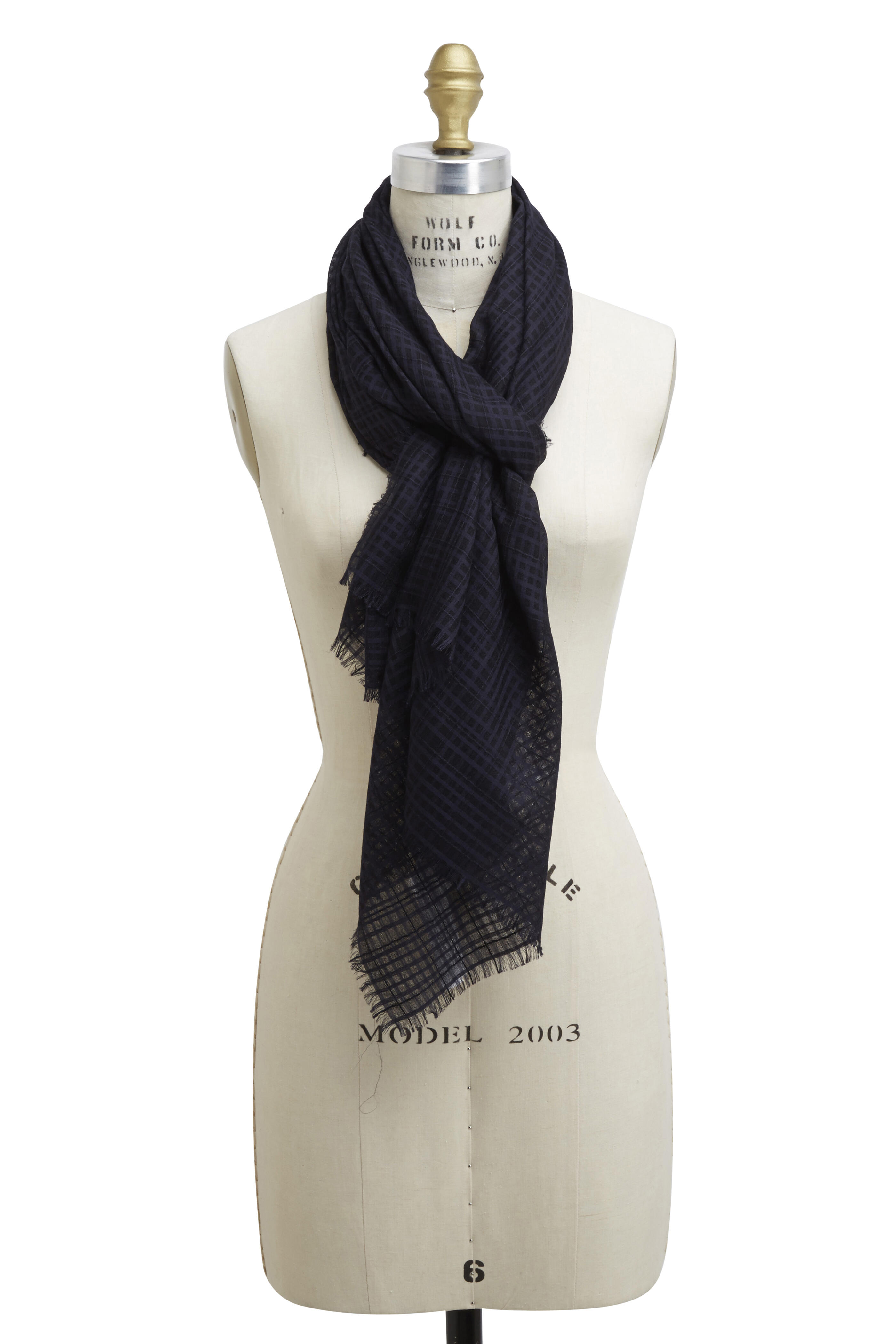 Gorgeously made navy blue scarf made in a lightweight organza fabric with a small tonal check pattern. It's perfect for a warm and comfortable wear on those cold and windy days.