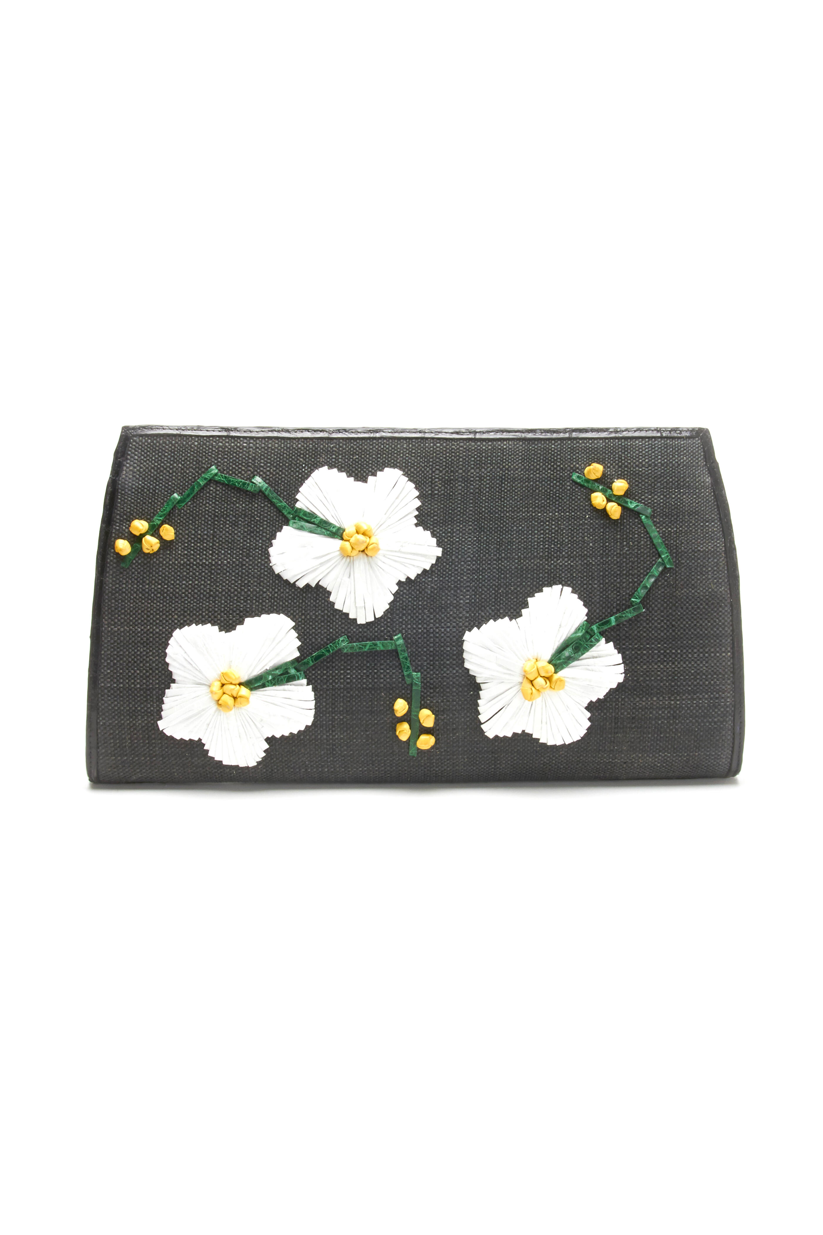 Gorgeous black and white clutch is made in a crocodile skin with a gorgeous floral pattern that is the perfect decorative piece that makes this clutch a must have for your collection.