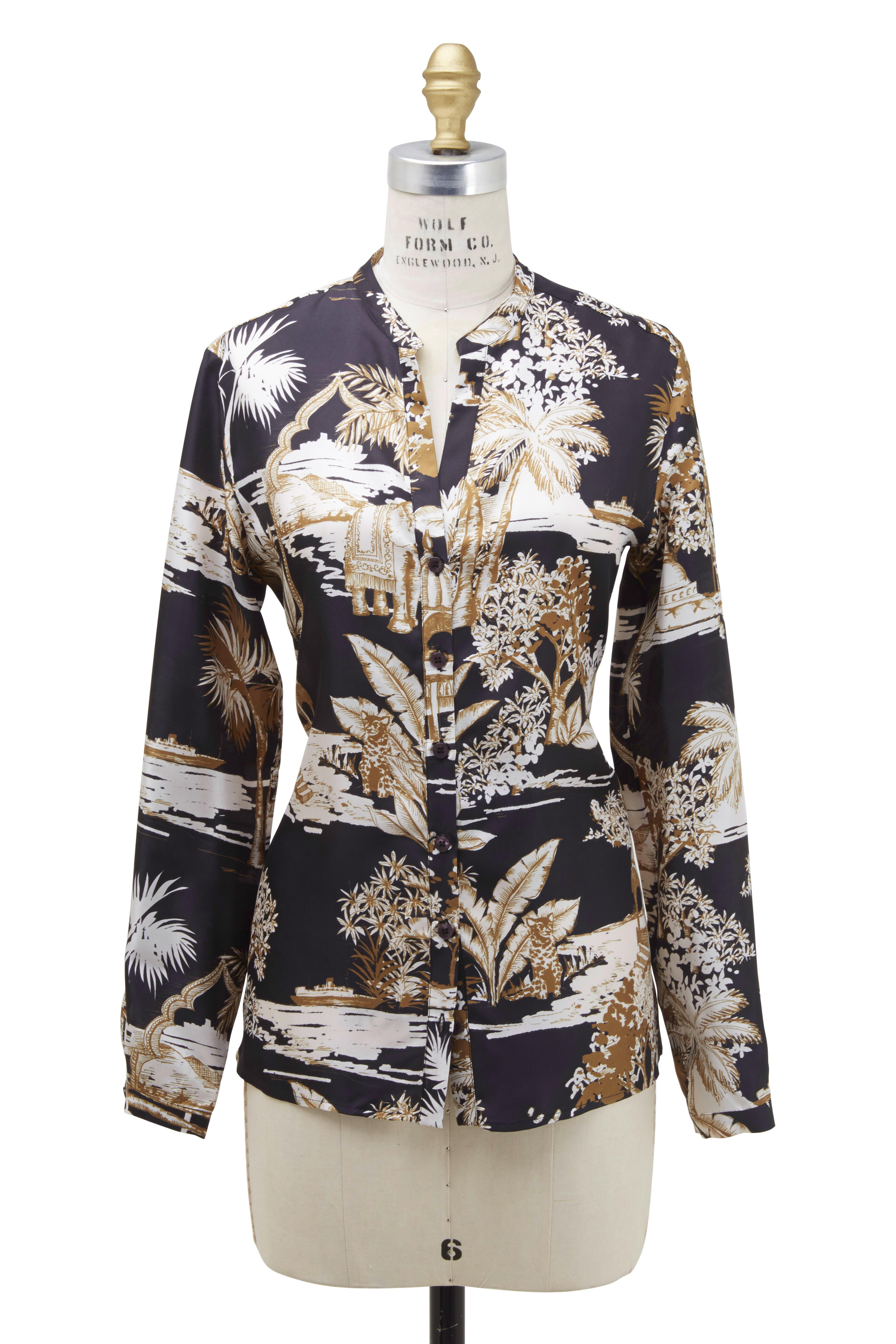 A black blouse with a pagoda floral print adds texture, depth, and a perfect to wear during the spring and summer months.