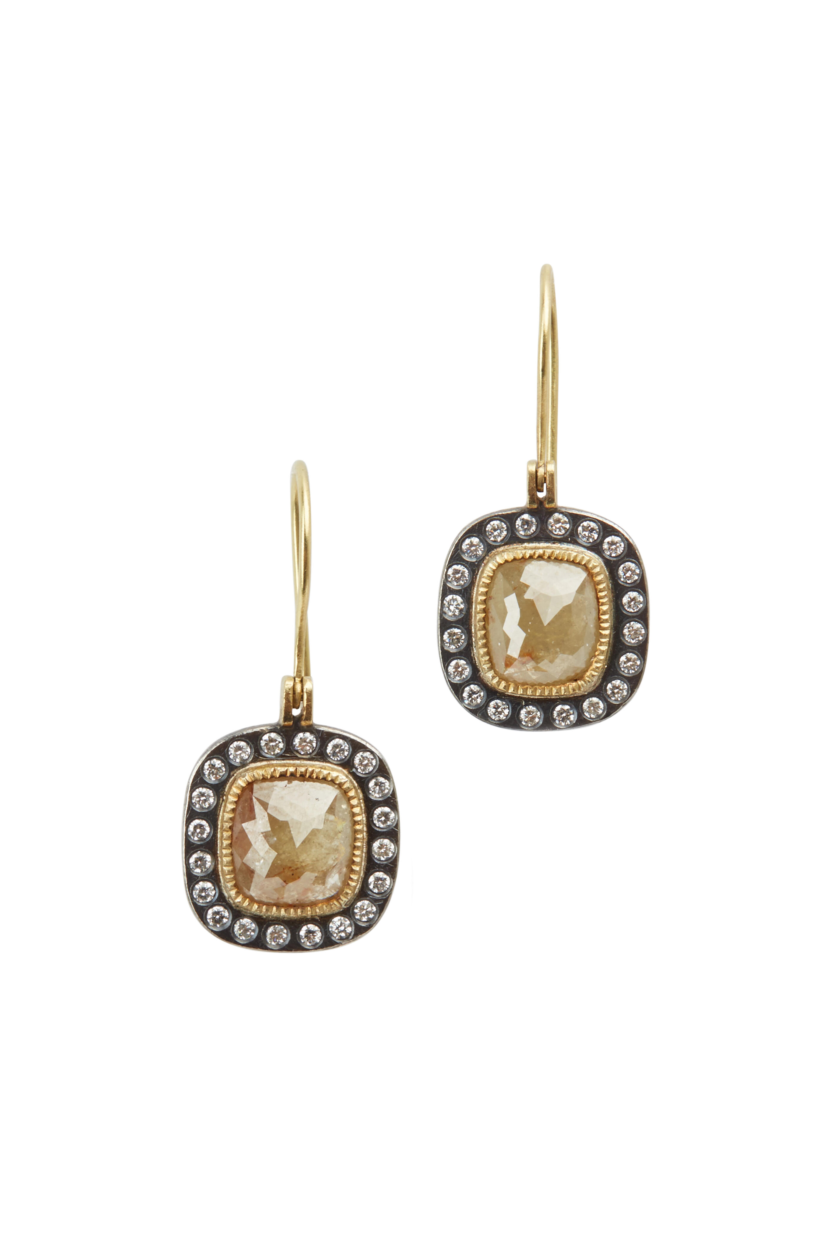 18K Gold & Silver Fancy Diamond Drop Earrings