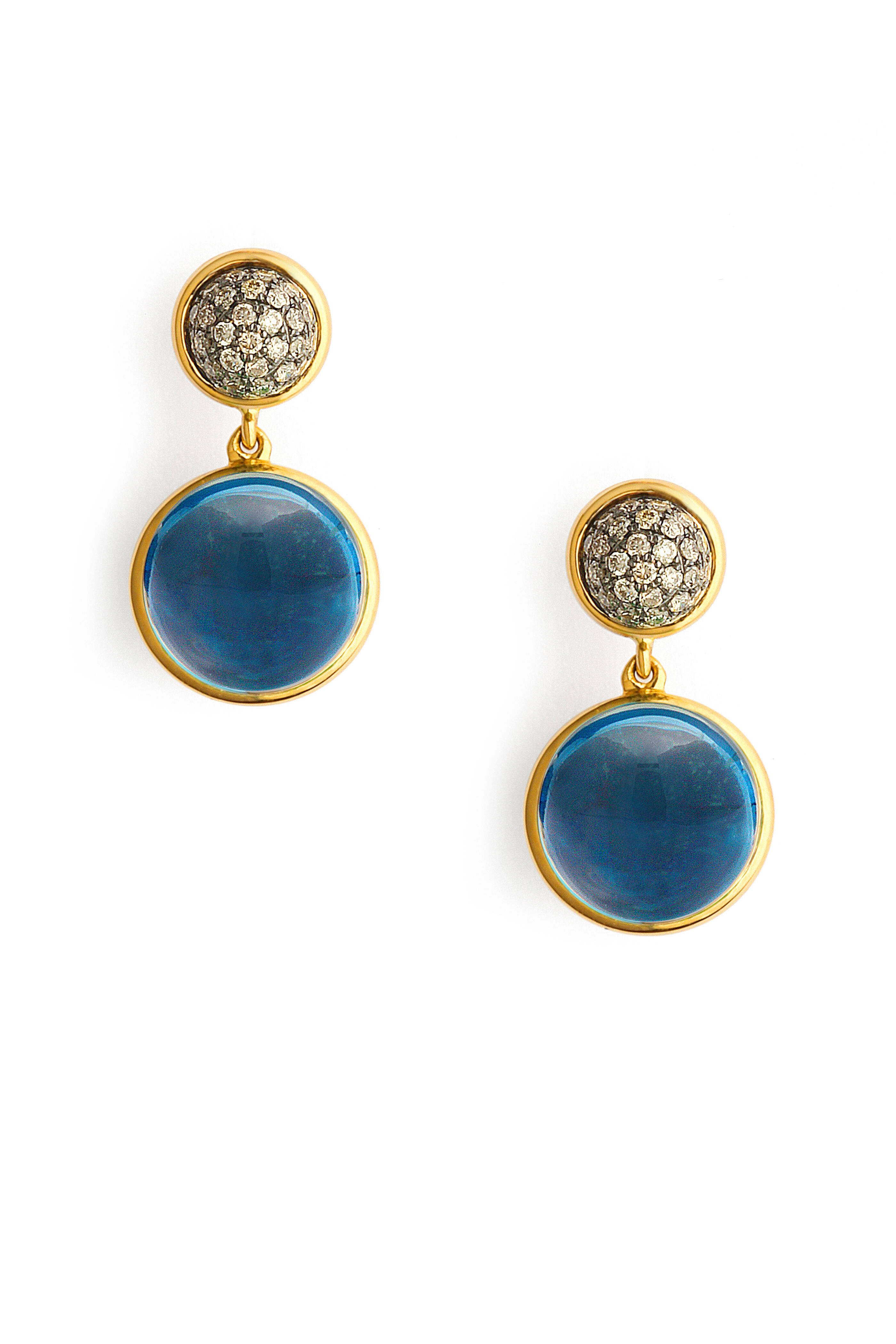 18k yellow gold london blue topaz big Baubles earrings with champange diamonds (CDIA: 0.50cts)