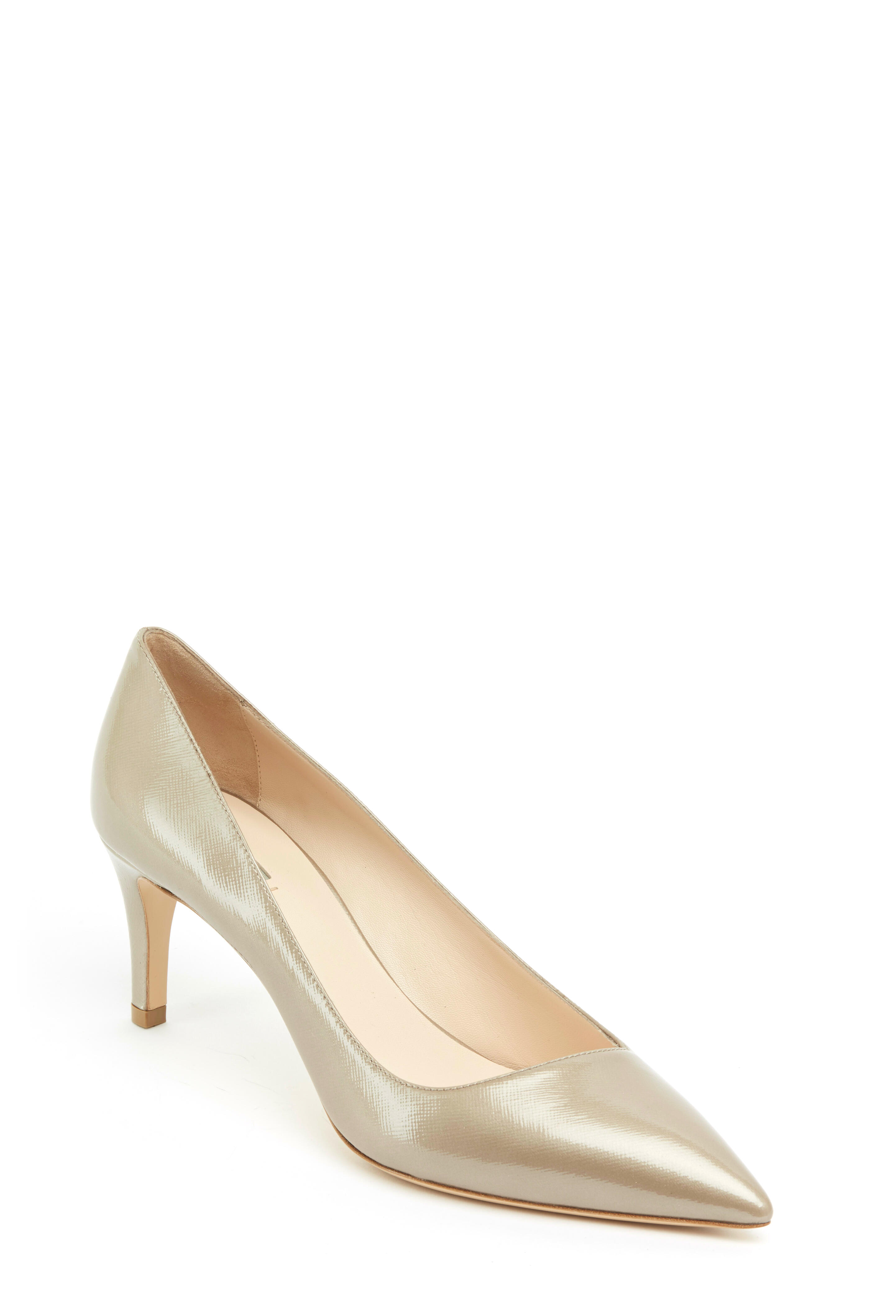 Traditional and beautiful Italian style brought to your closet with these sand colored patent leather pumps with a small heel. Beautiful to pair with jeans, or a dress for those special occasions.