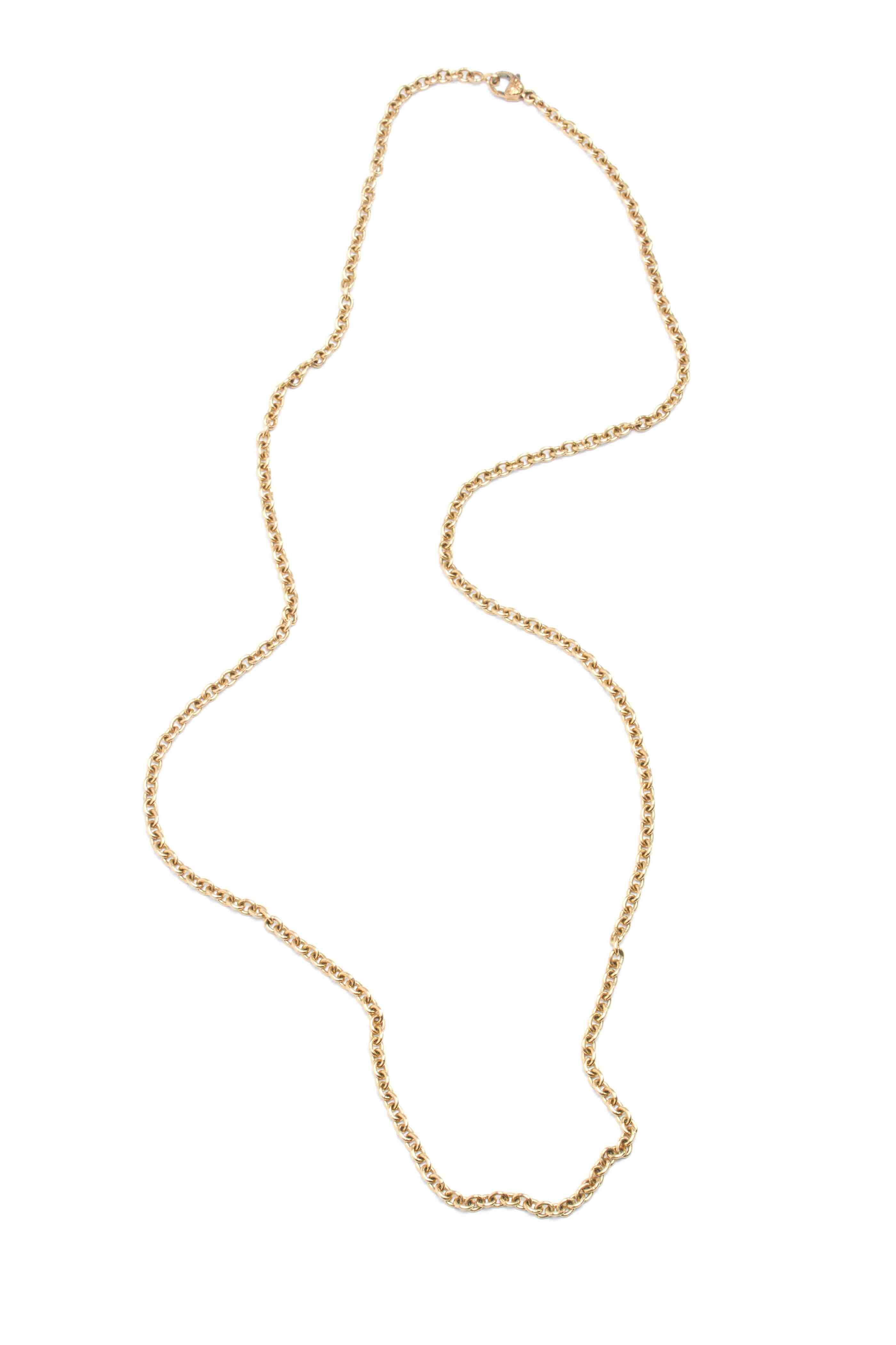 A link chain that is a little different, this highly polish 14k yellow gold necklace is very luxurious. It has a lovely interwoven style of highly structured links that form a smooth, round feel.