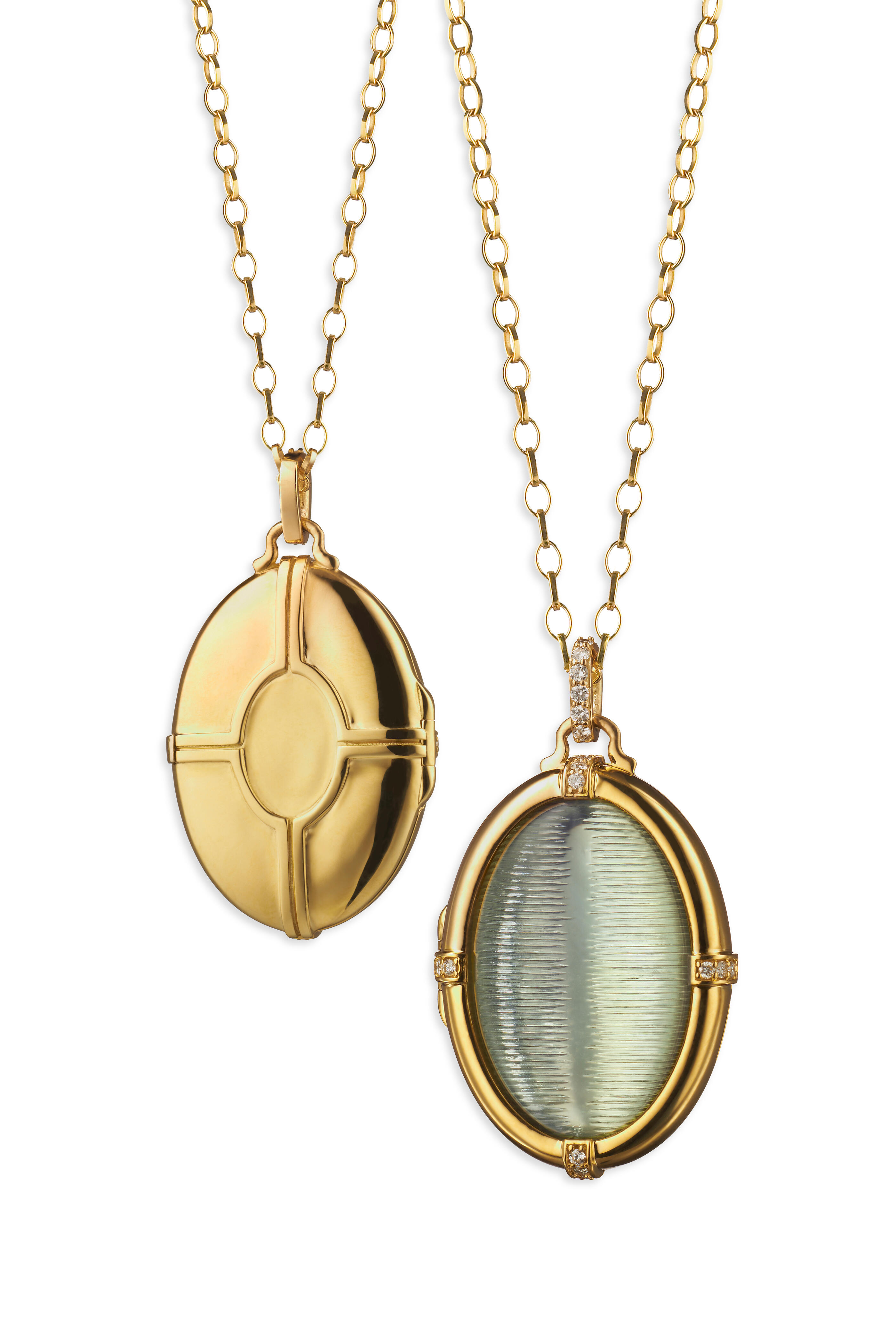 18k yellow gold. Prasiolite cats eye. 32" belcher chain.