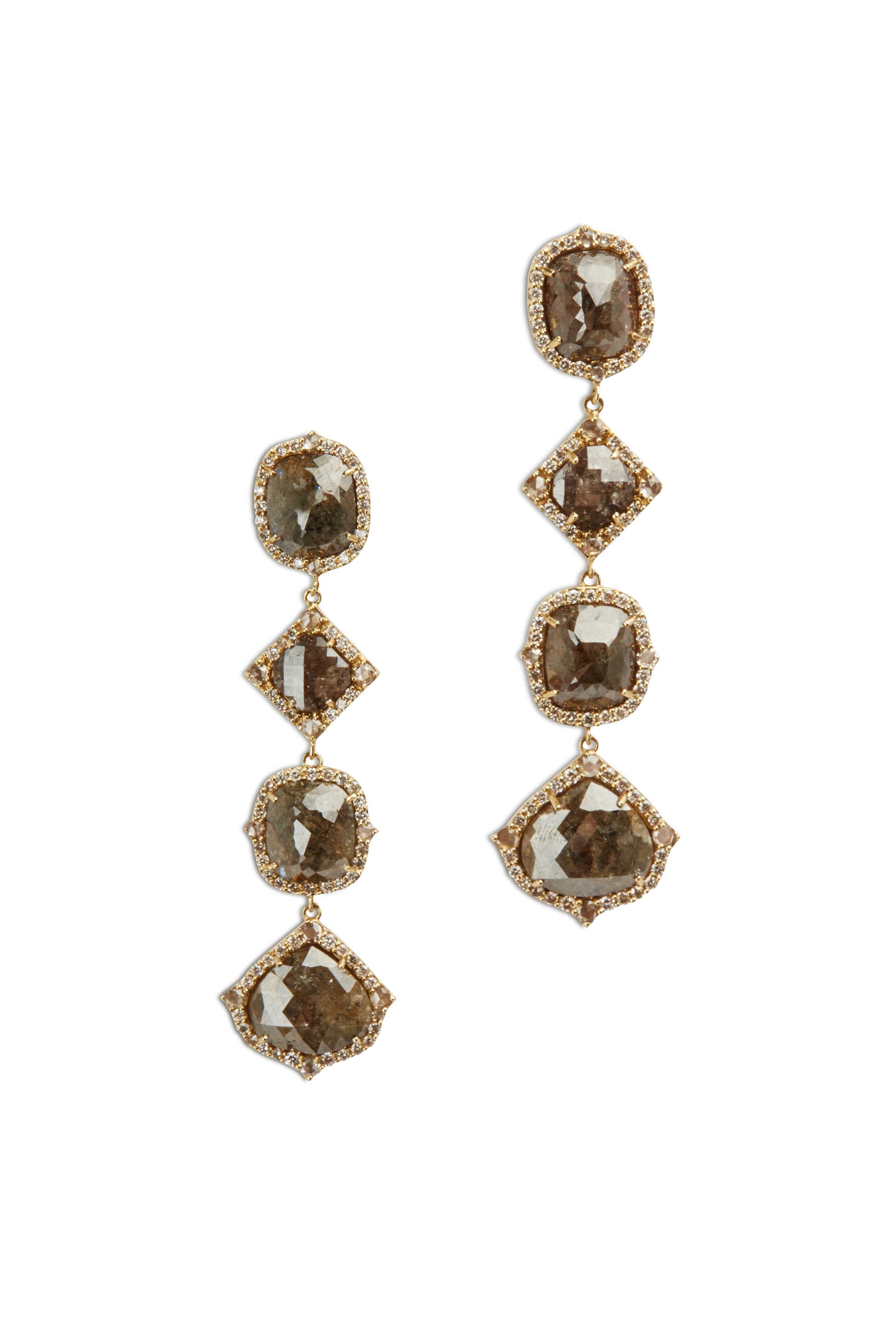 Yellow gold. 26.86cts diamonds. 4 tier earrings.