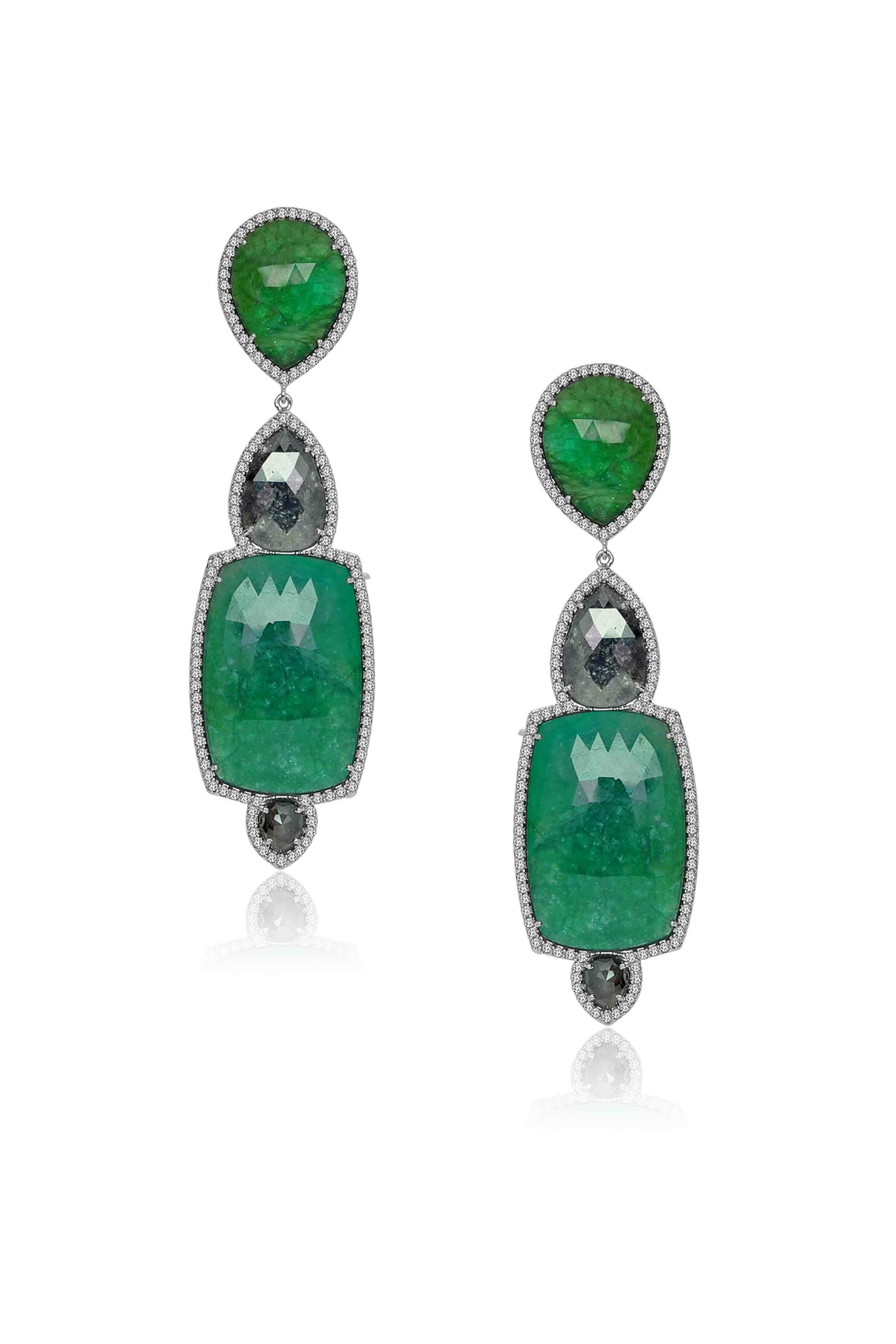 Rough Diamond Emerald Earrings