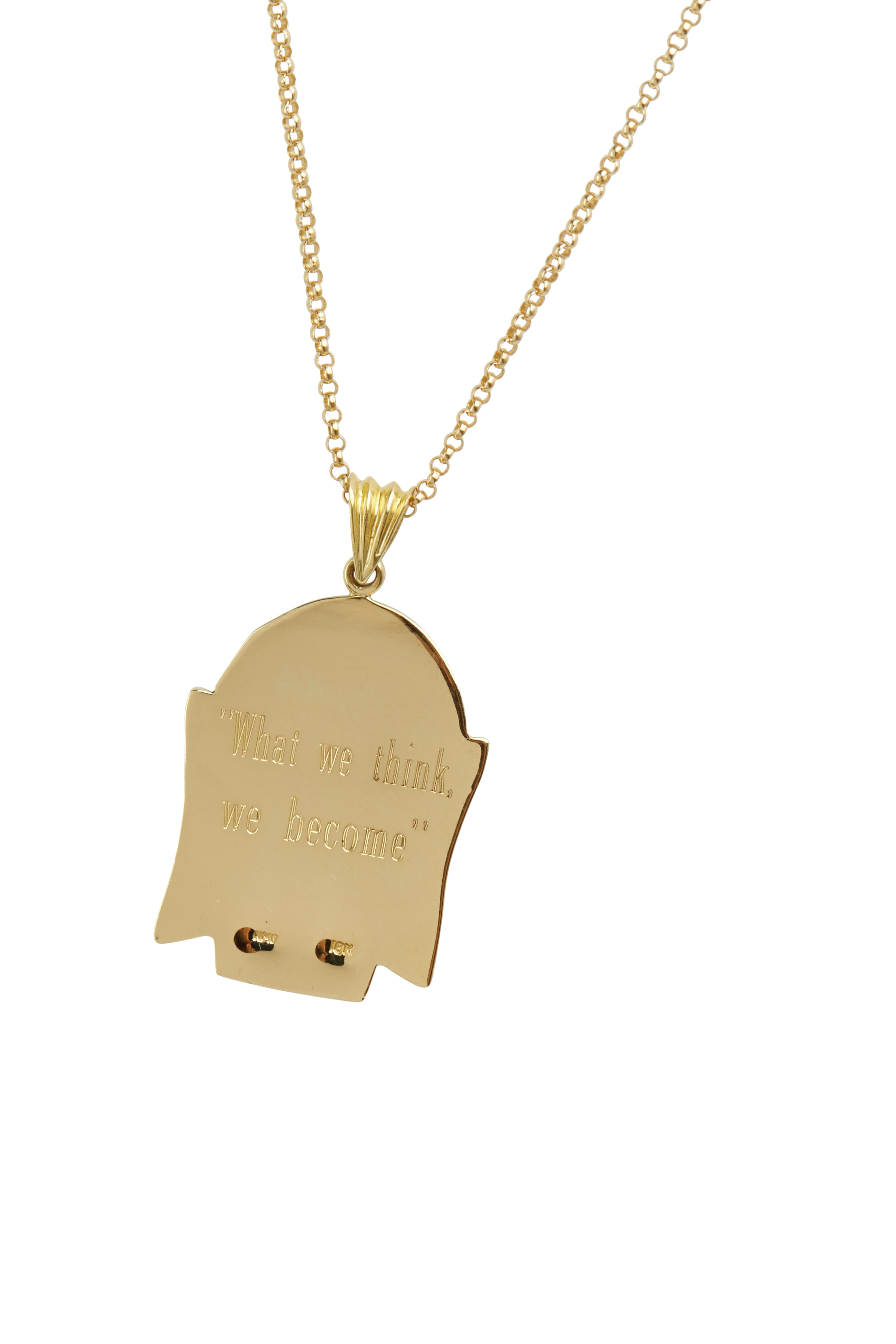 18k yellow gold. 0.29cts green opal third eye. Small Buddha pendant. 18" length.