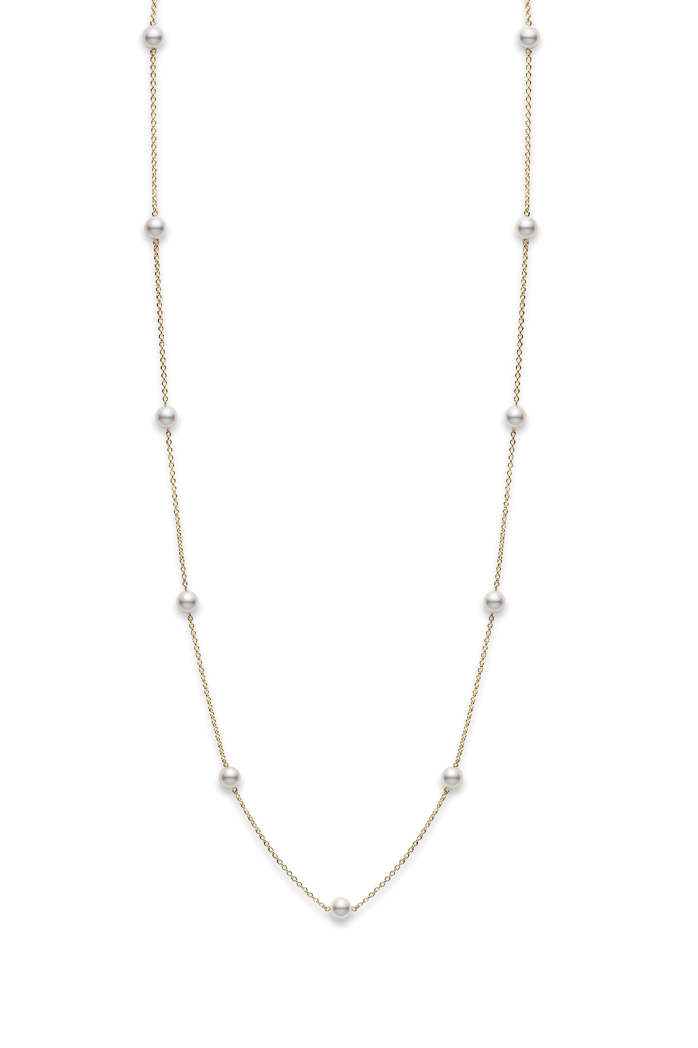 18k white gold. 6mm - 6.5mm Akoya pearls. 32" length.