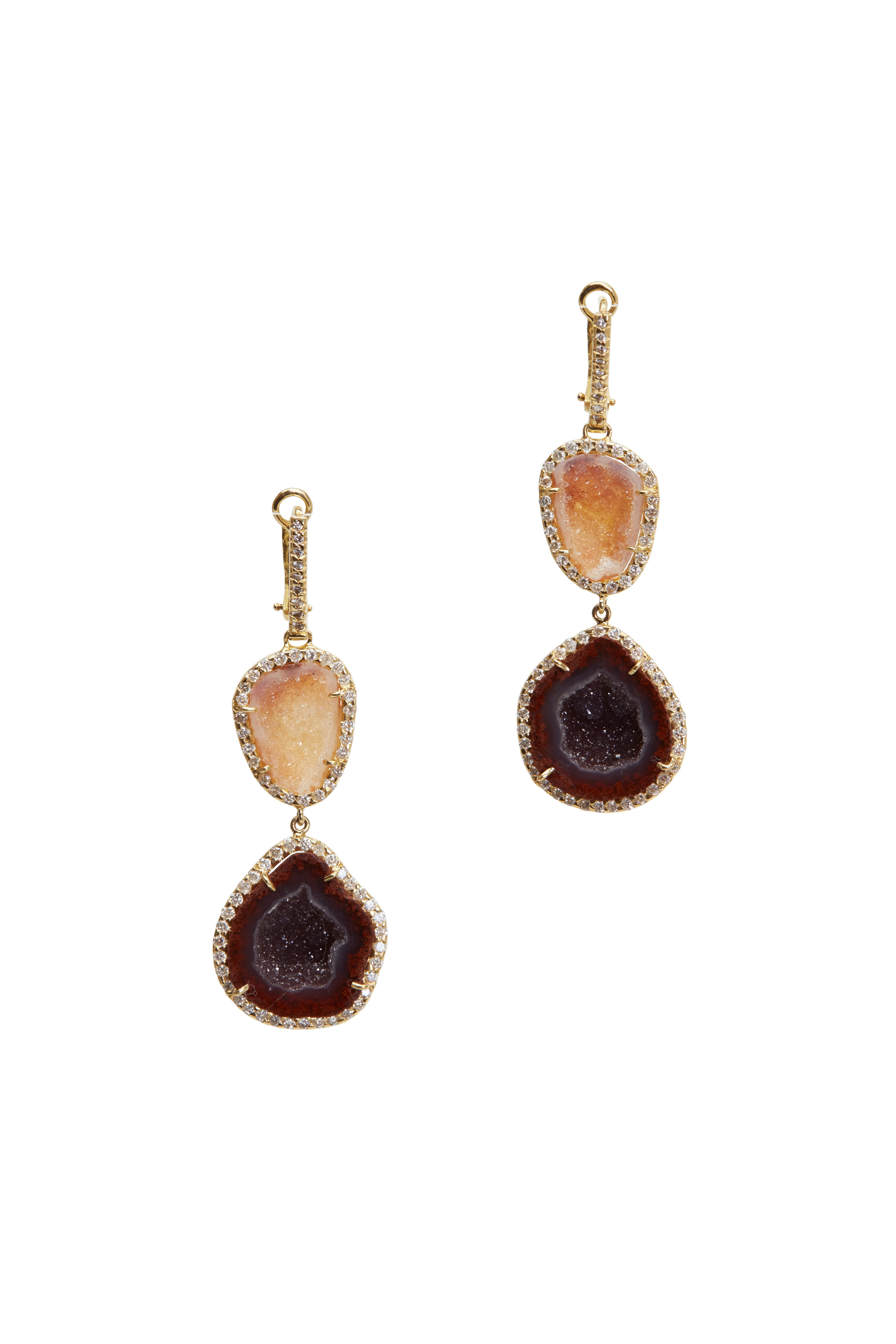Yellow Gold Double Geode Diamond Earrings