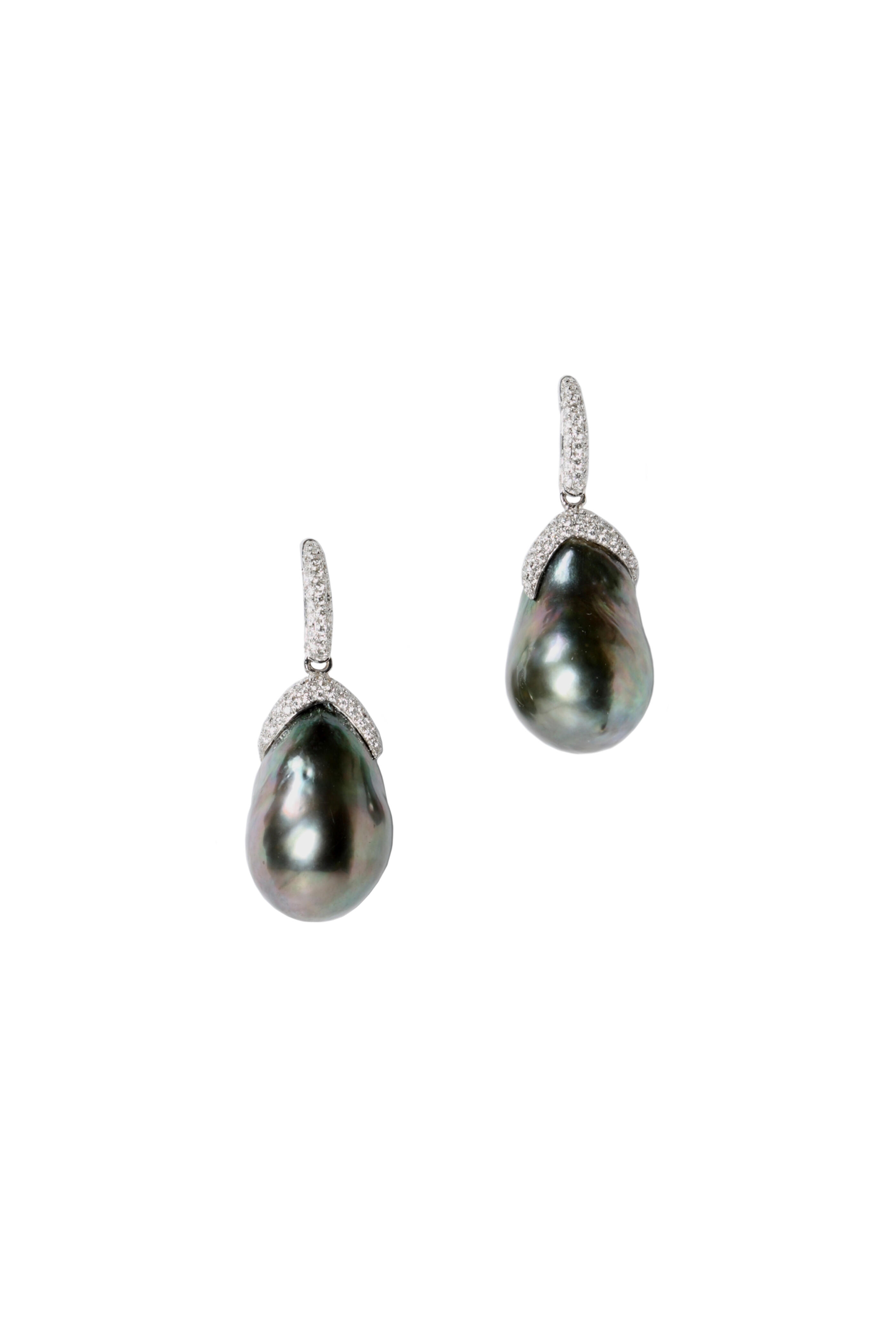 White Gold Tahitian Pearl Diamond Drop Earrings