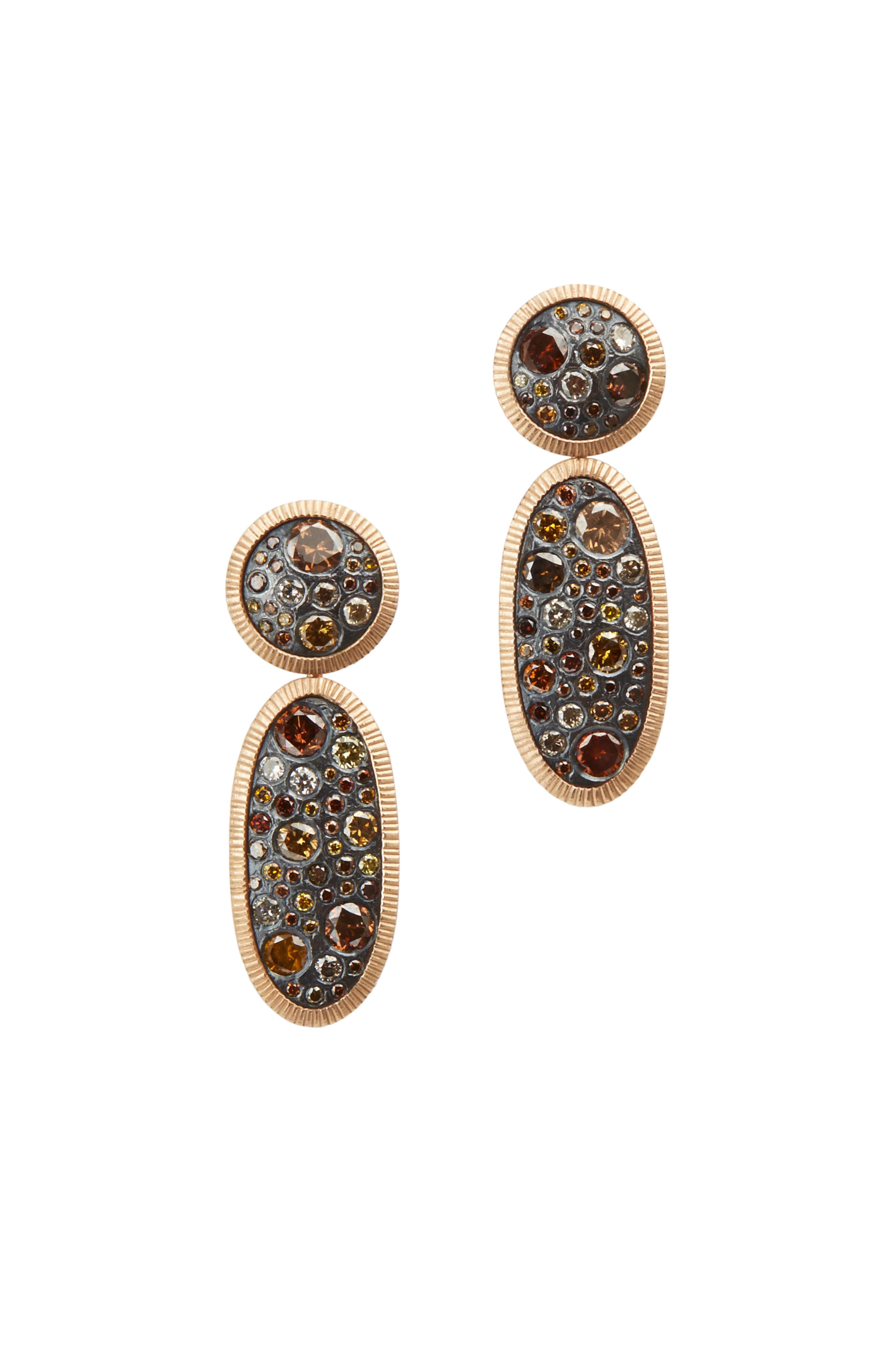18k rose gold & sterling silver. 3.07cts mixed autumn diamonds. Double drop earrings.