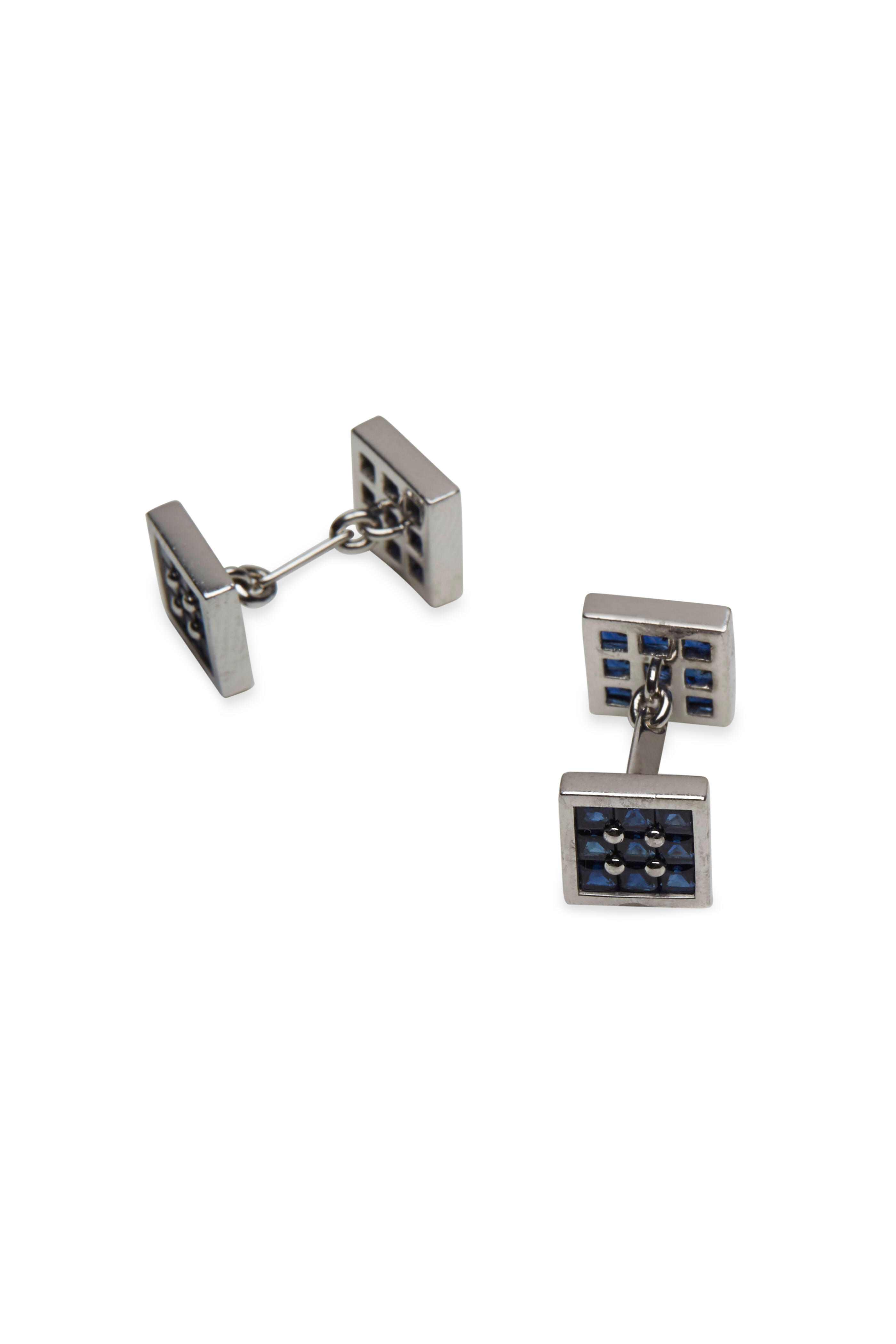These finely crafted, double sided cuff links showcase luscious royal blue sapphire gemstones set in polished platinum and white gold. The beautiful blue is easy to match; they will make a fantastic addition to your collection.