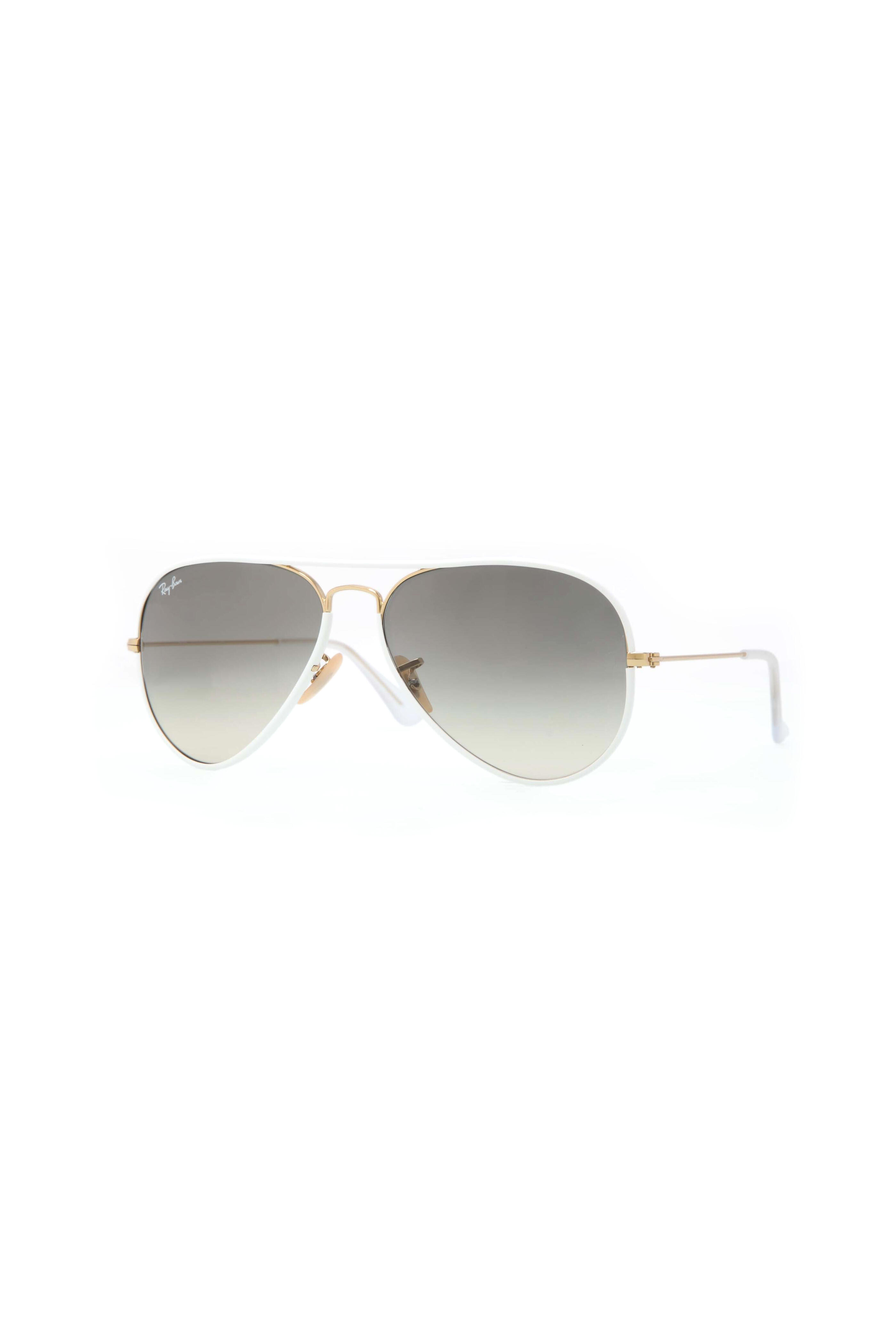 Frame material: plastic. Frame color: gray. Lens color: gray gradient. Lens shape: aviator. Style: RB3025JM58-Y146/3258.