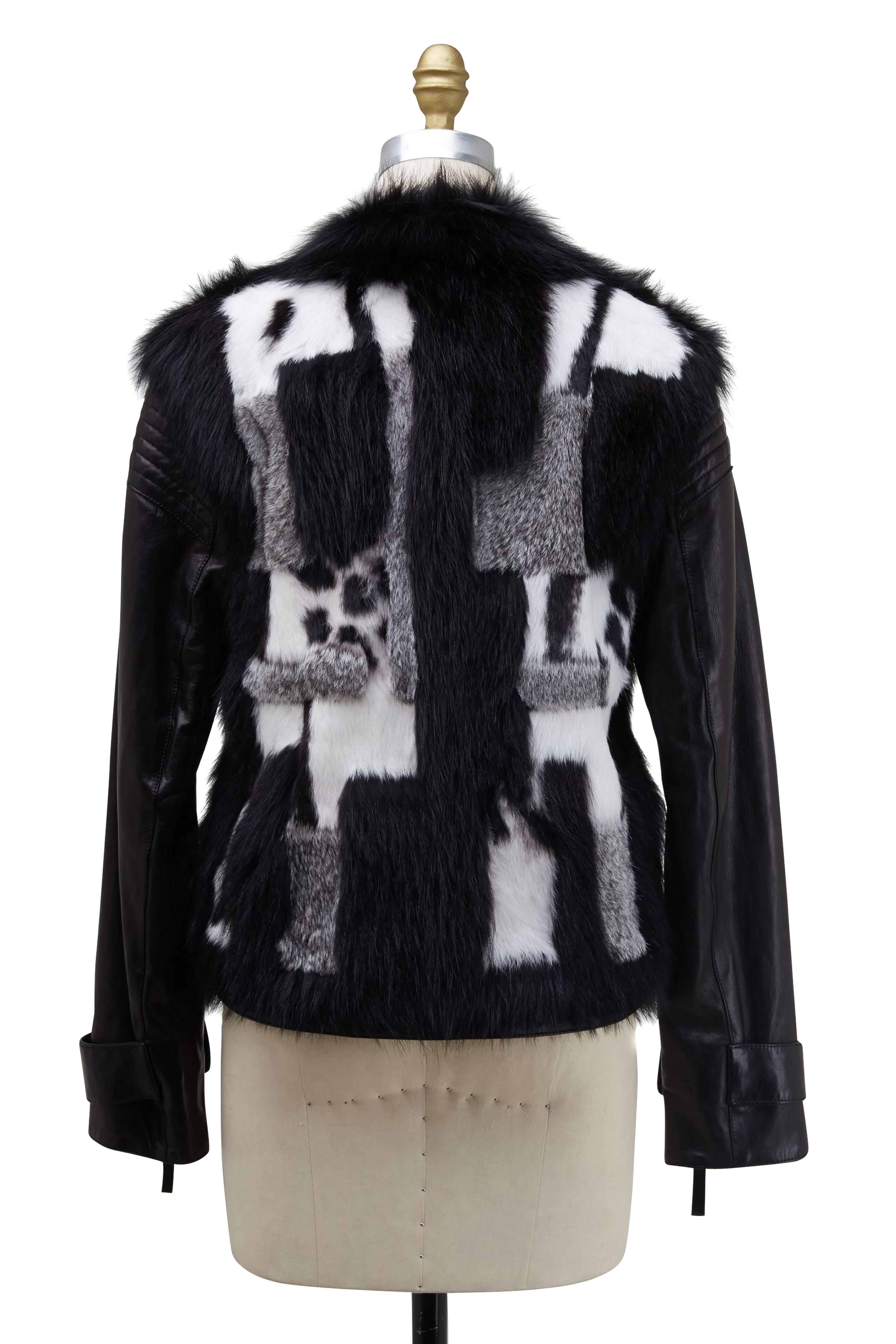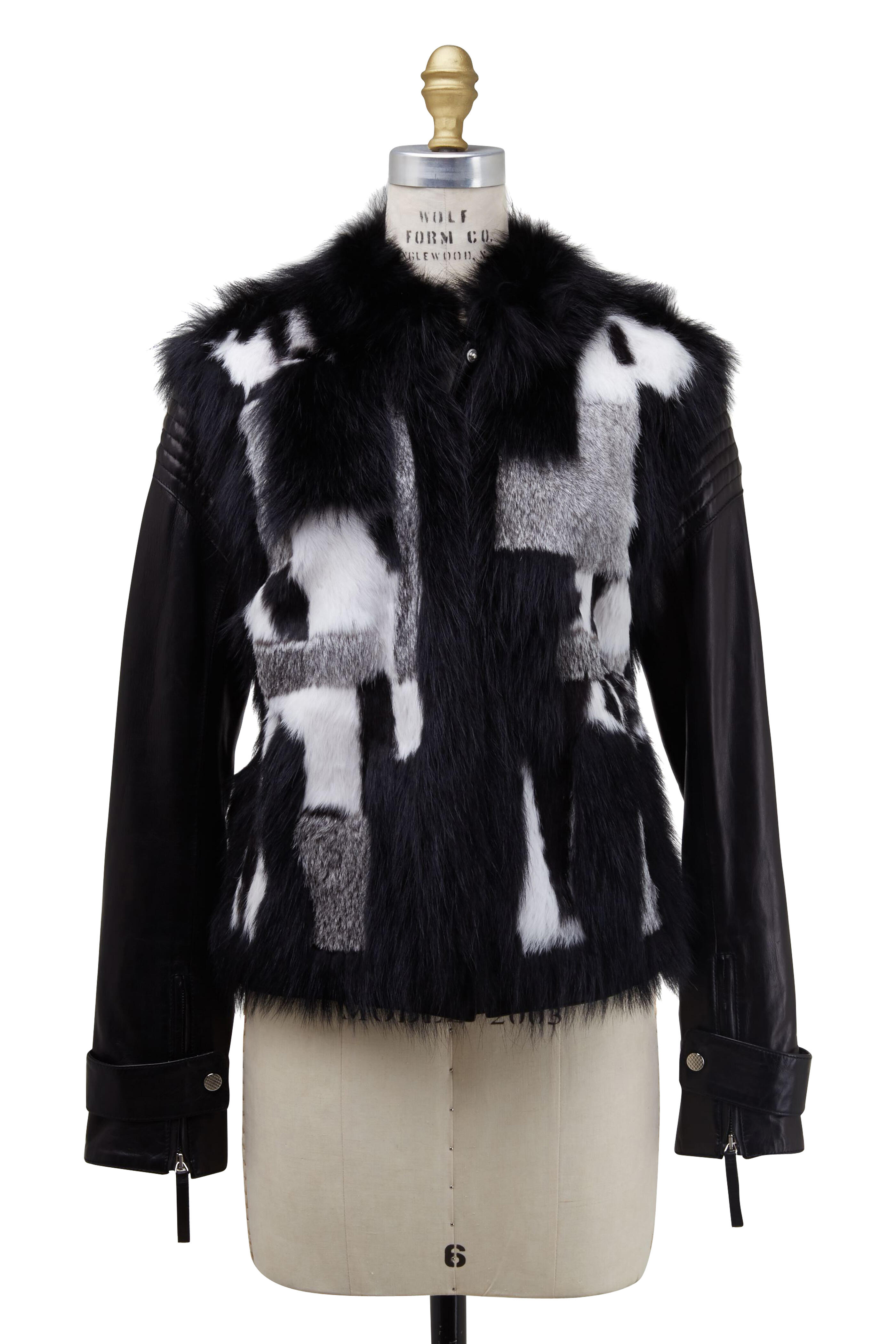 Specialist clean. Crewneck. Long sleeves, quilted at shoulder, concealed-zip cuffs, strap with snap closure. Front snap closure. Two front seam pockets. Straight hem. Rabbit fur from Spain, raccoon fur from Canada. Made in Italy. 100% real dyed and natural rabbit fur, 100% real dyed and natural raccoon fur; 100% leather; silk full lining.