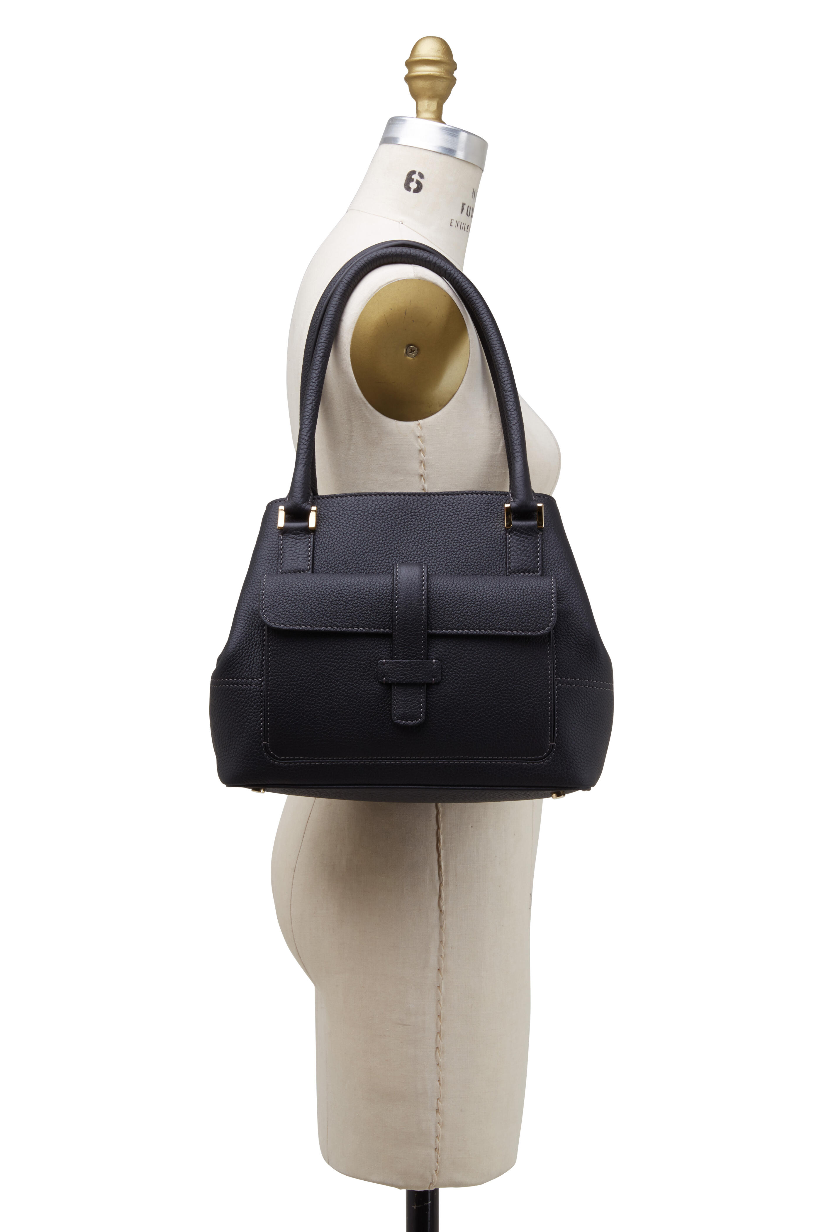 Globe Black Leather Small Trapeze Tote