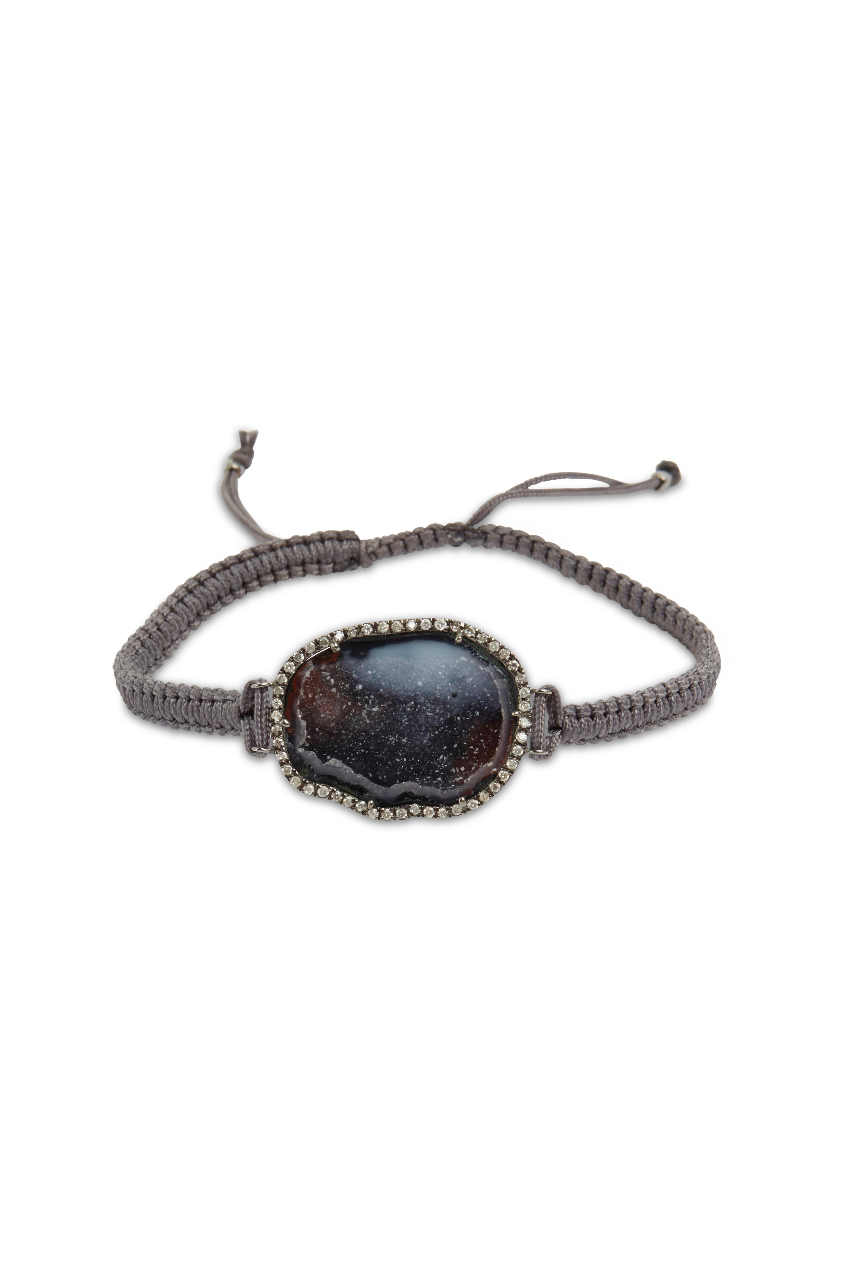 White Gold Dark Geode Diamond Macrame Bracelet