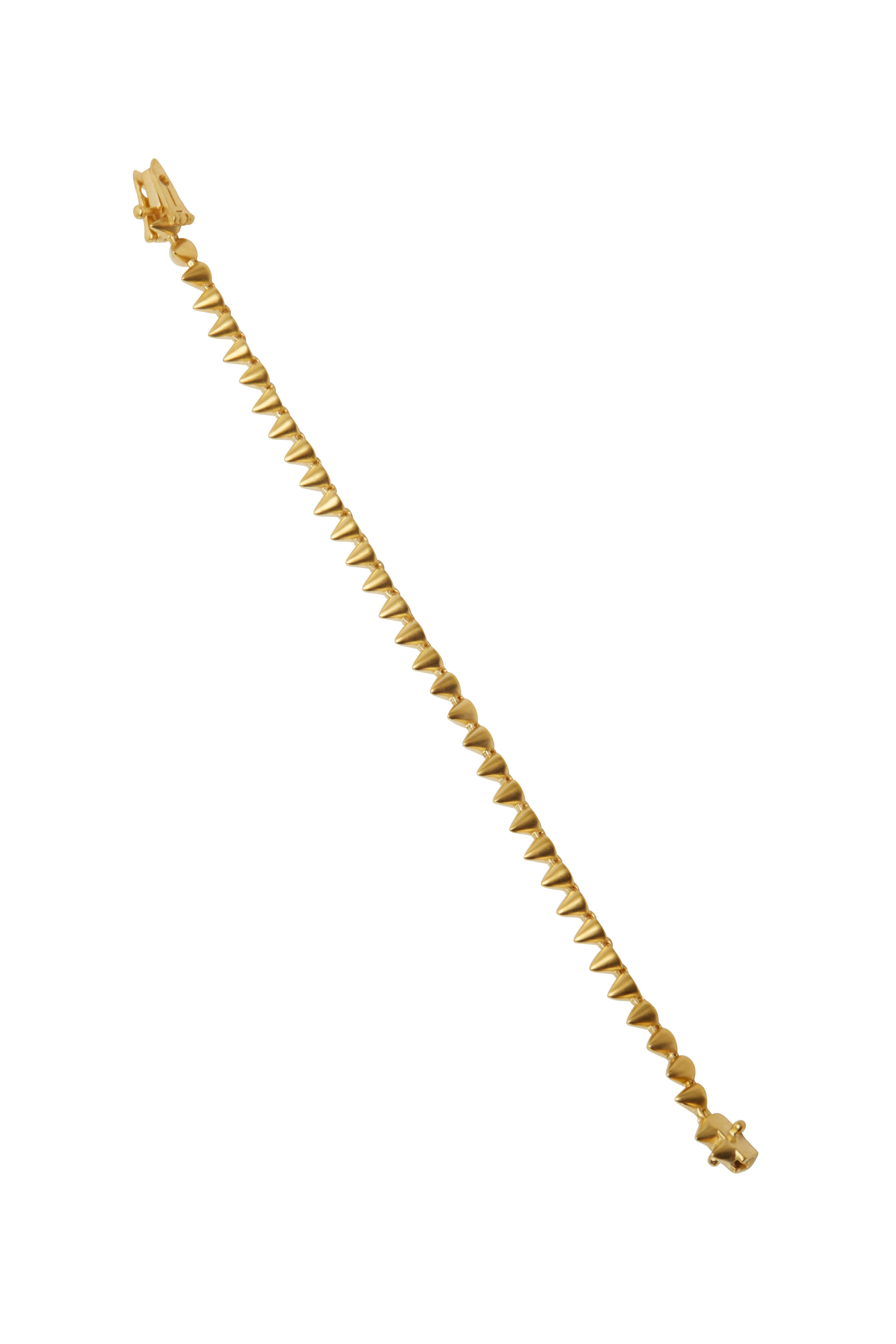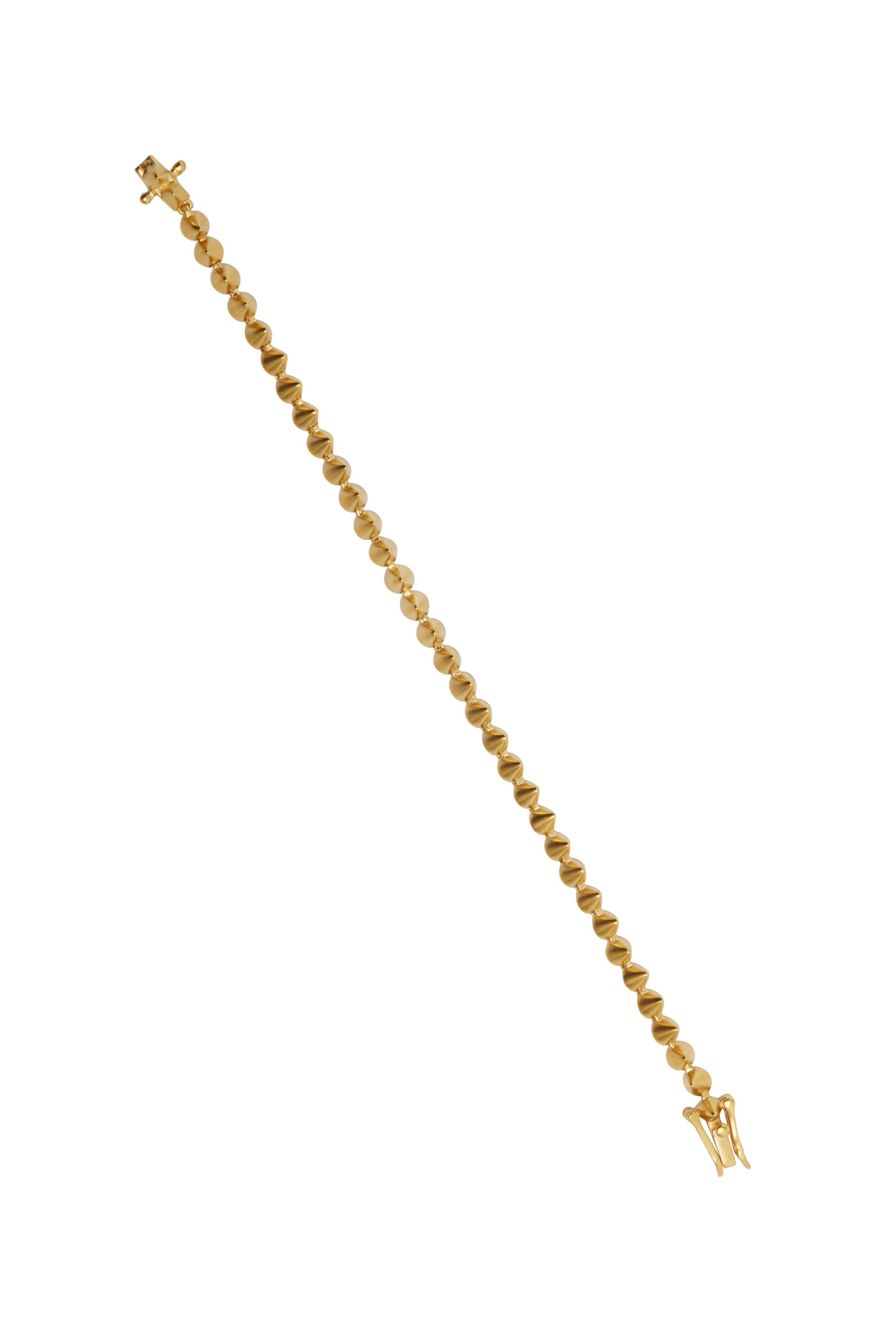 A signature Eddie Borgo look, this yellow gold mini cone bracelet speaks of punk culture and New York City style. Stacked or worn on its own, it takes notice.