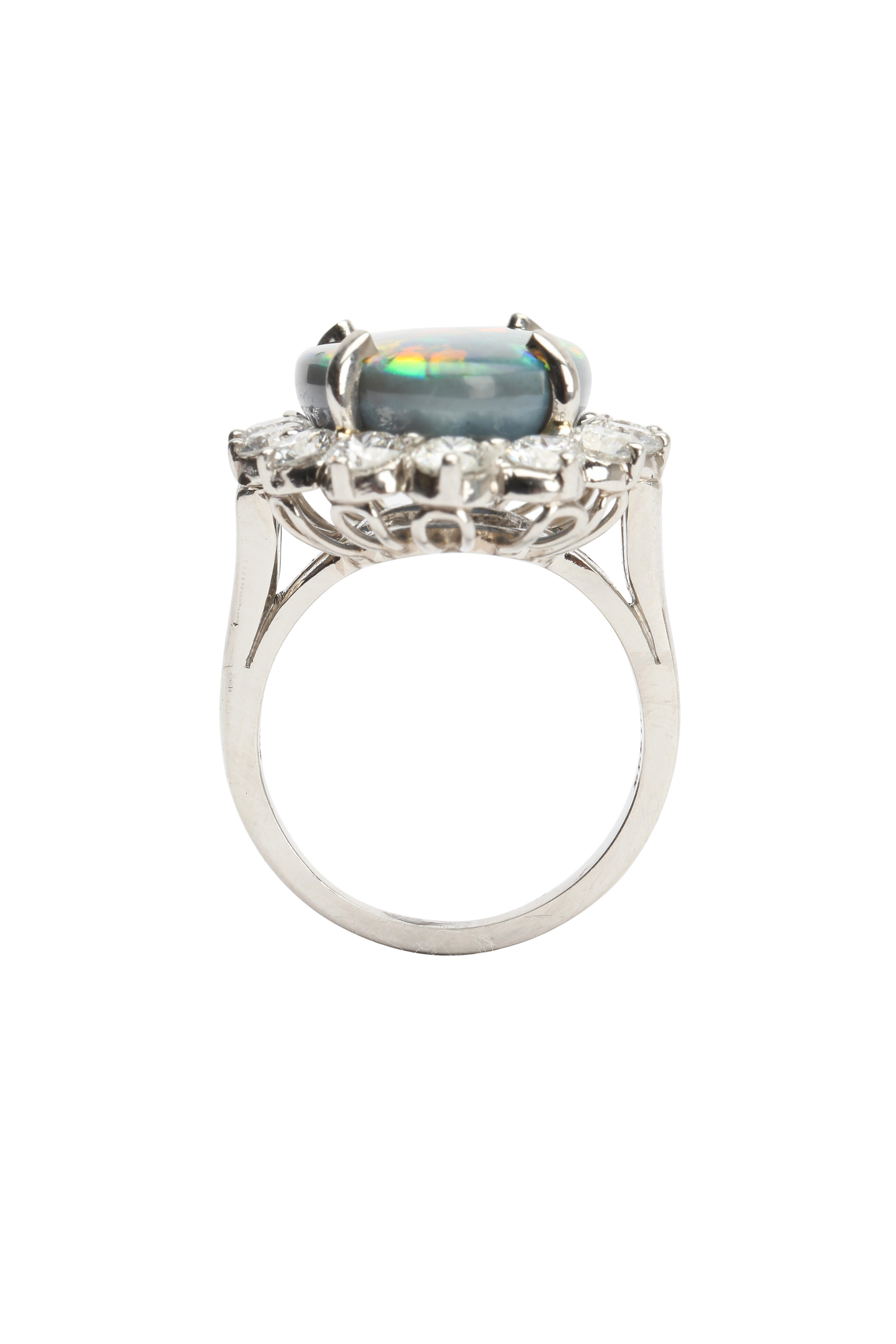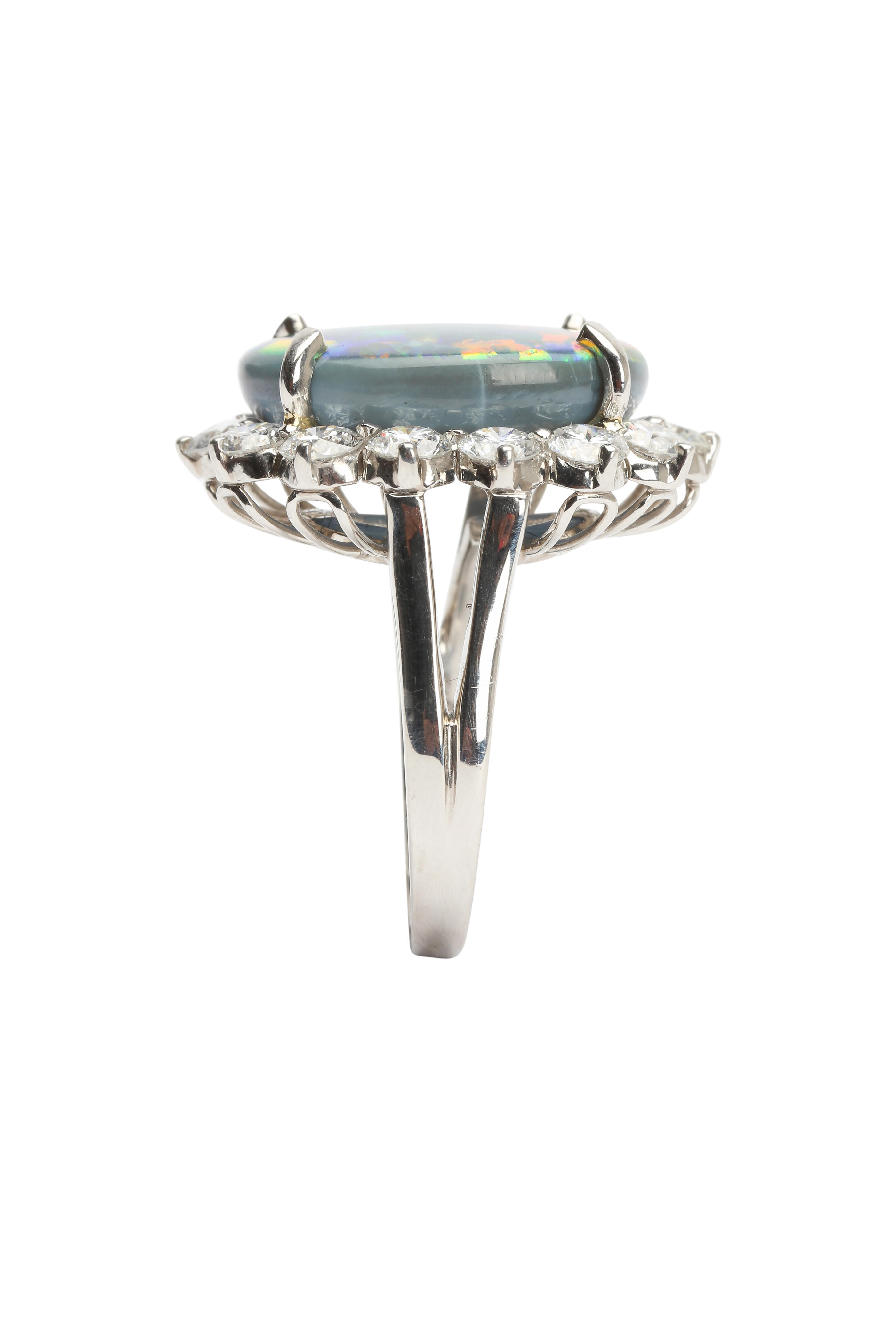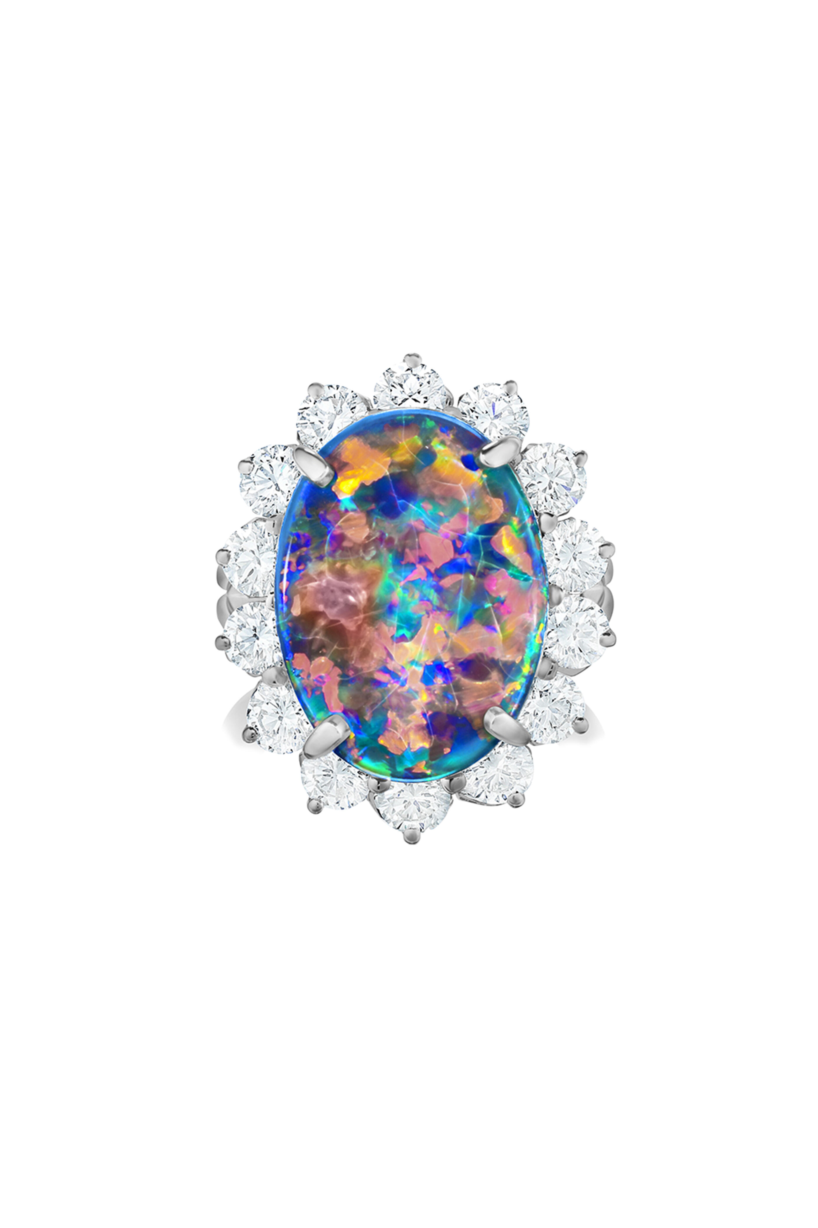 Platinum. Opal, 8.26 total carat weight. Diamonds, 2.28 total carat weight.