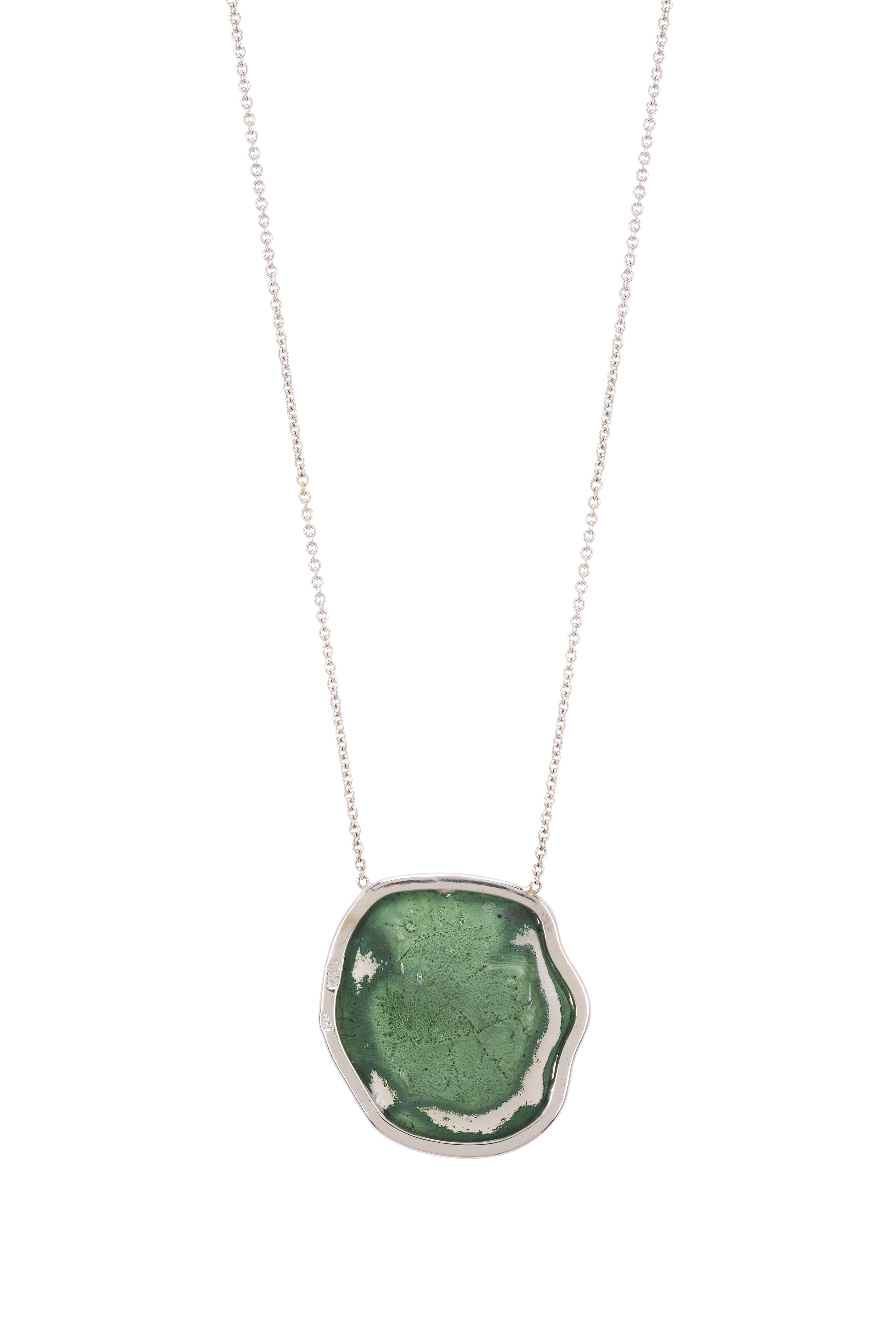18k white gold. Light blue geode. 0.66cts white diamonds.
