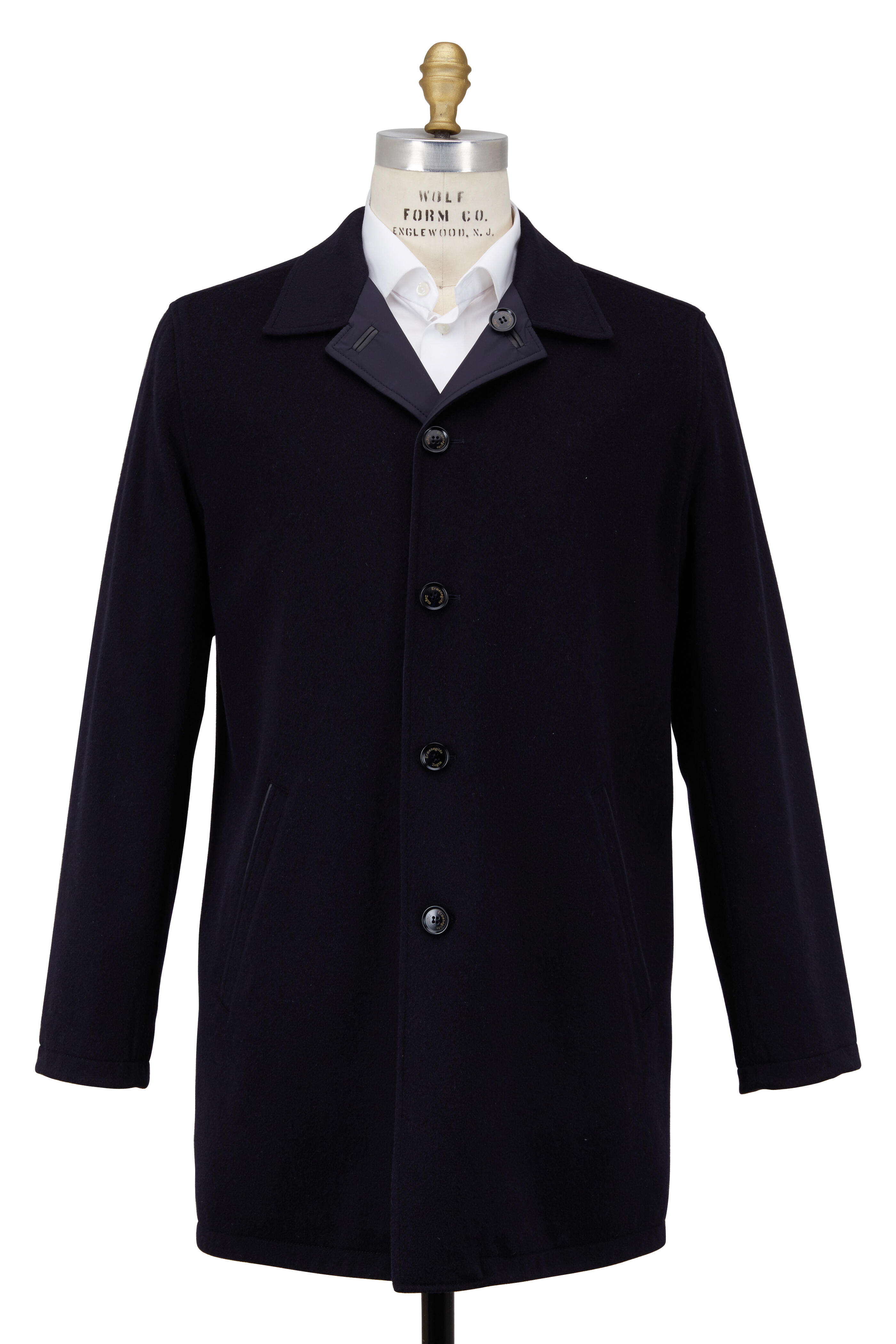 Navy Blue Wool & Cashmere Reversible Top Coat