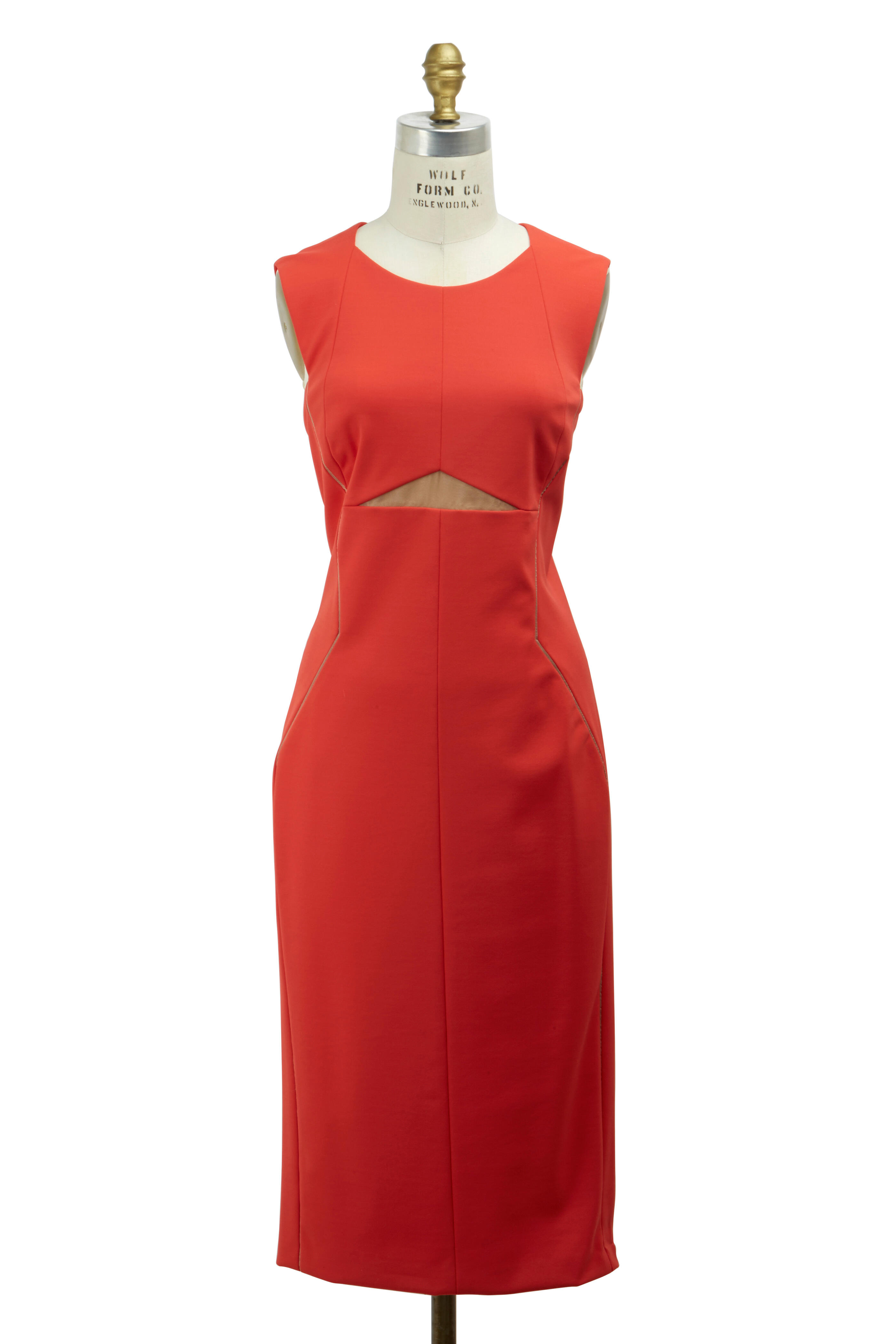 Contrast mesh inserts hit a dramatic note when set against a magnetizing siren red, fitted silhouette.
