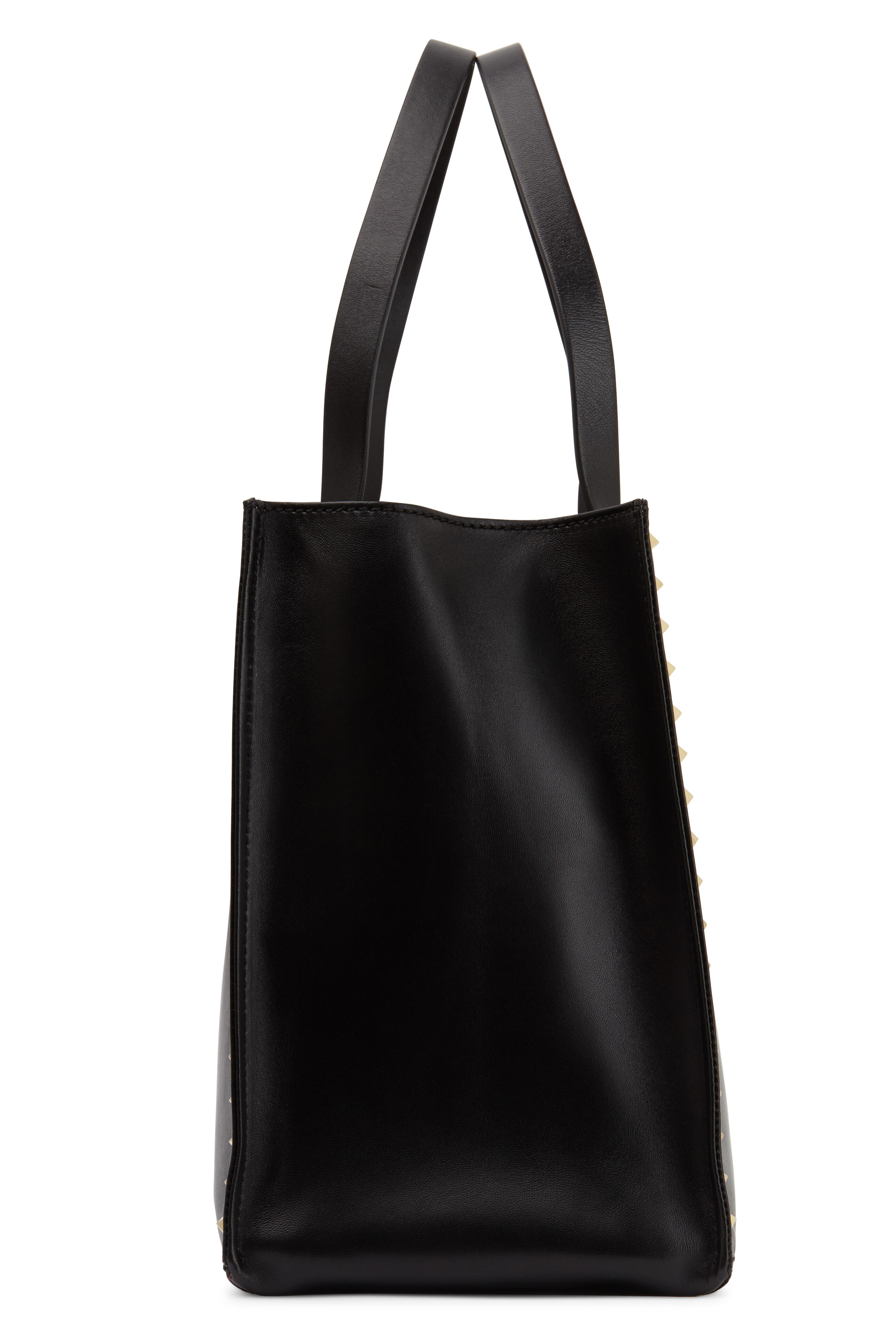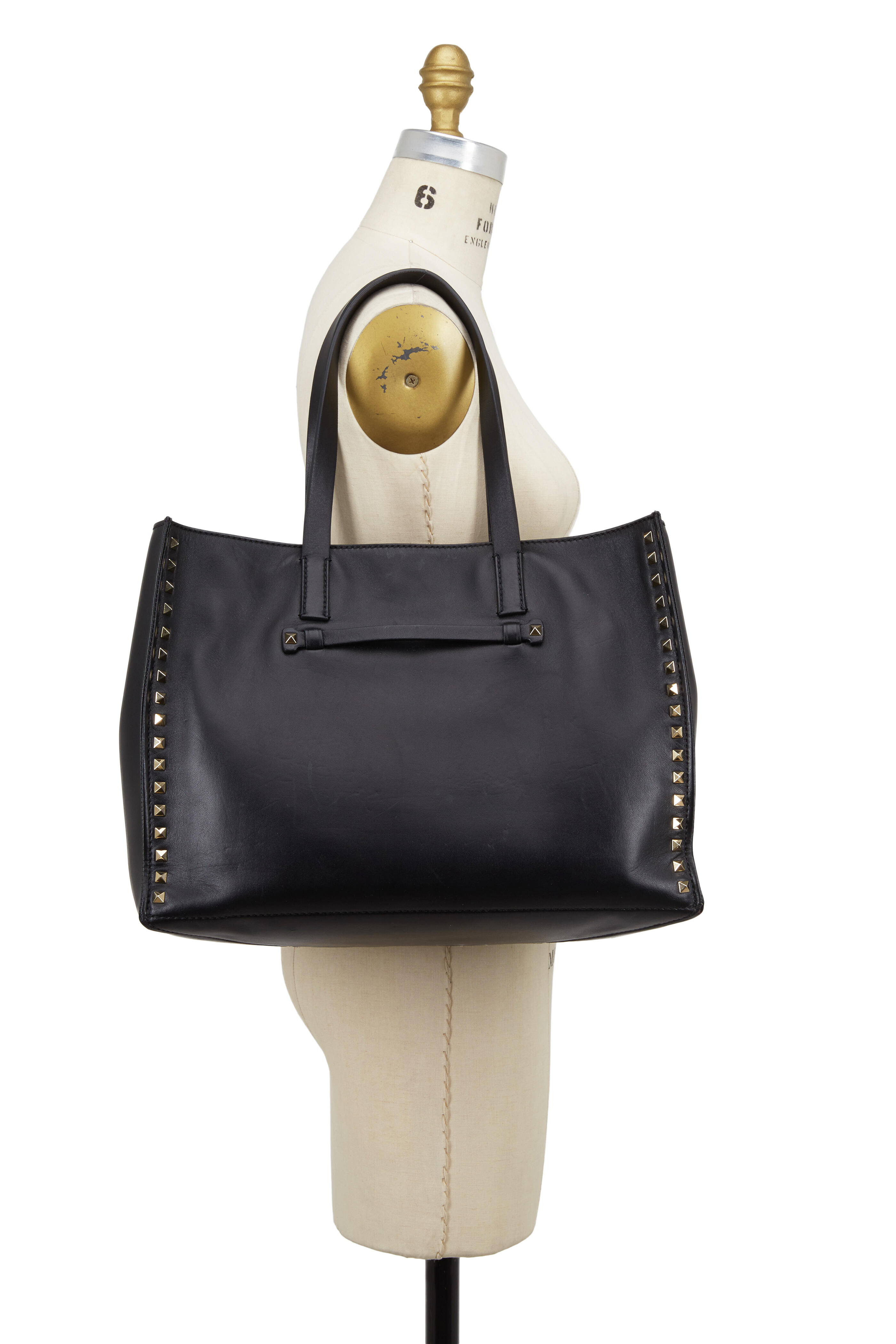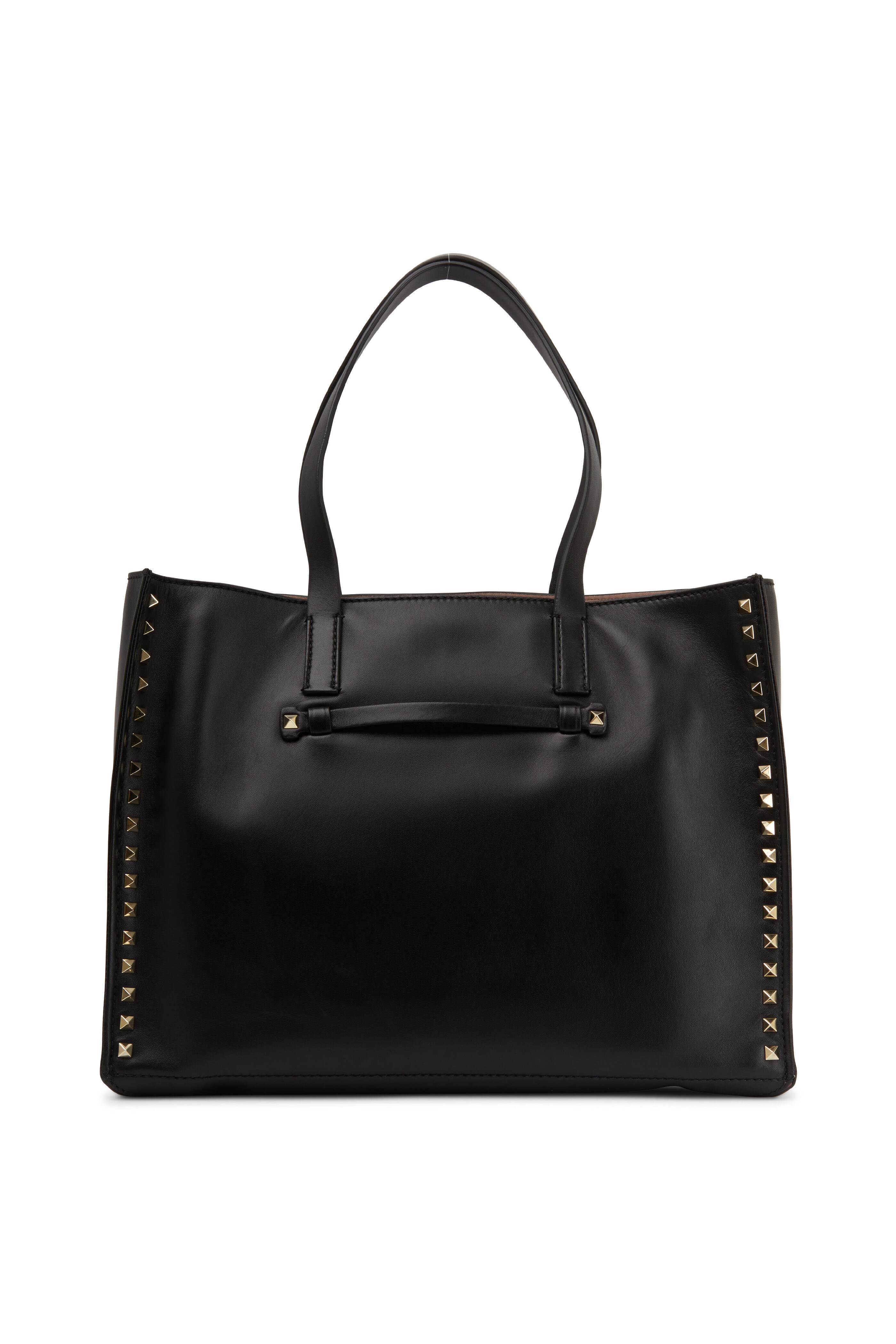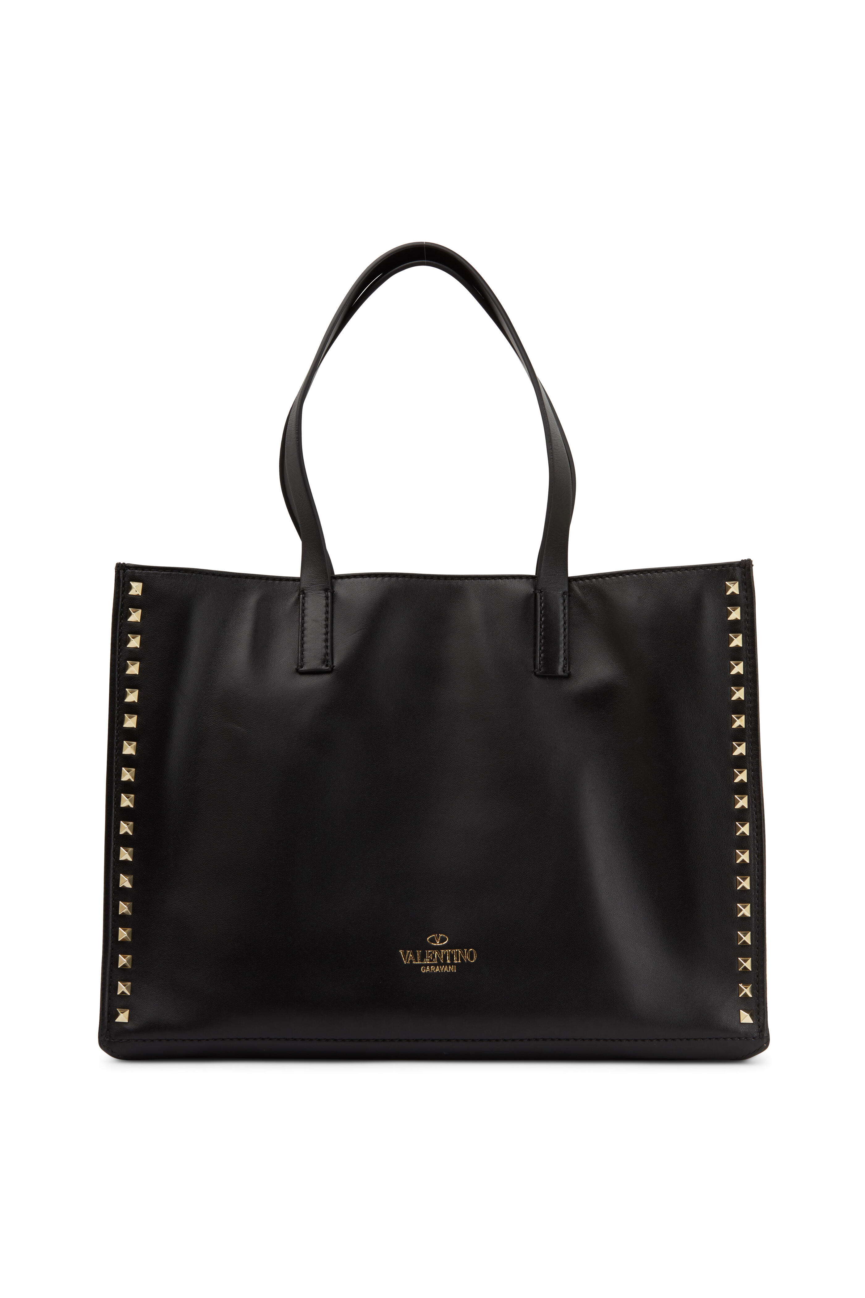 Double top handles. Magnetic snap closure. Interior zip and smartphone pockets. Contrast leather lining. Signature rockstud detail. Made in Italy. Width: 15". Height: 11". Depth: 7". Handle drop: 8 ¼". 100% lambskin.