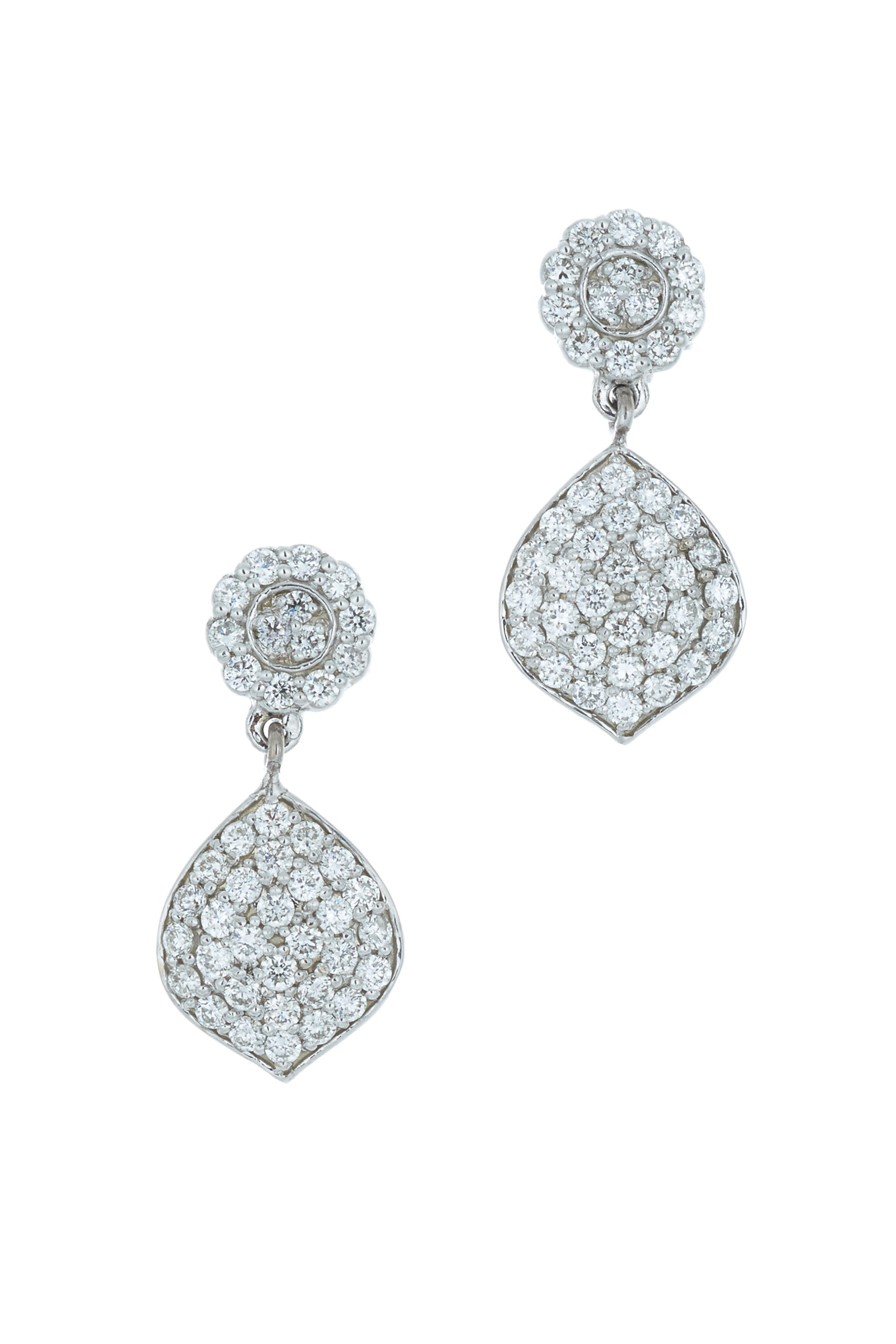White gold. Pavé-set white diamonds. Acorn earrings.