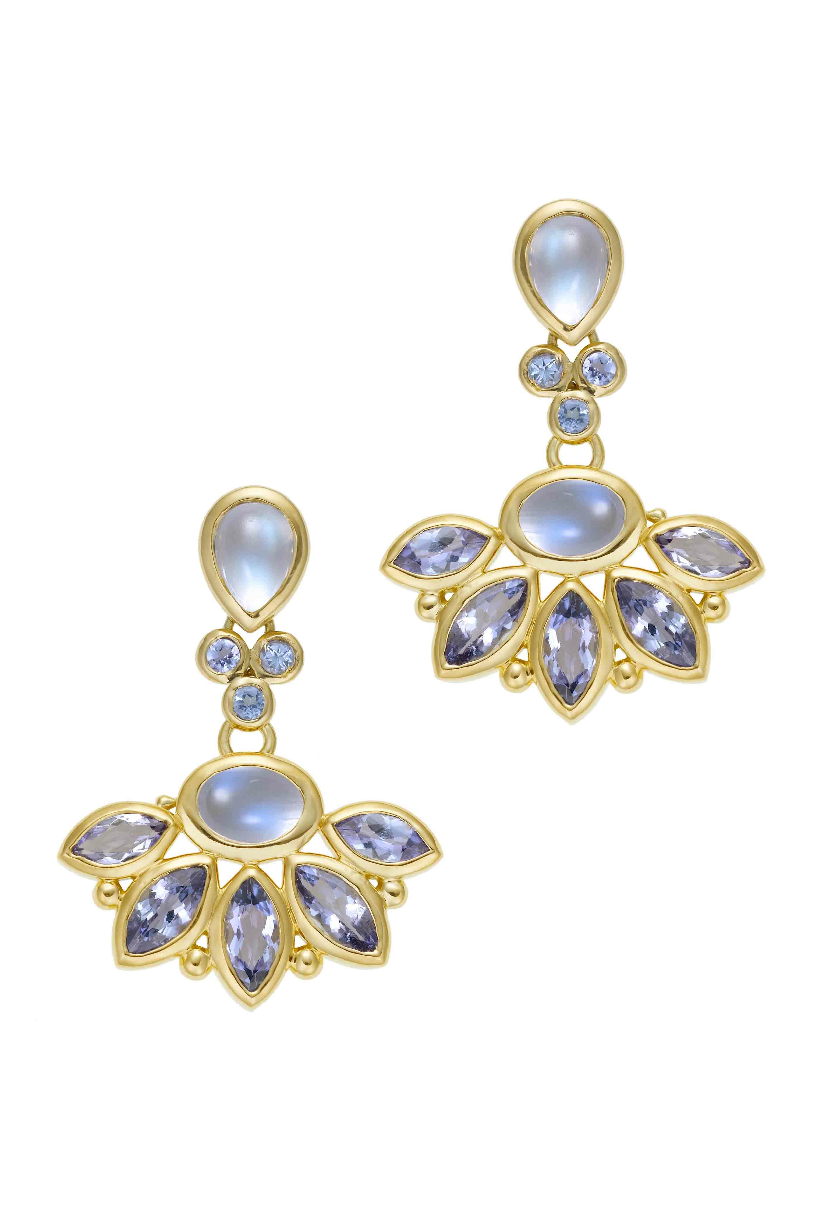 18K Phoenix Wing Moonstone & Tanzanite Earrings