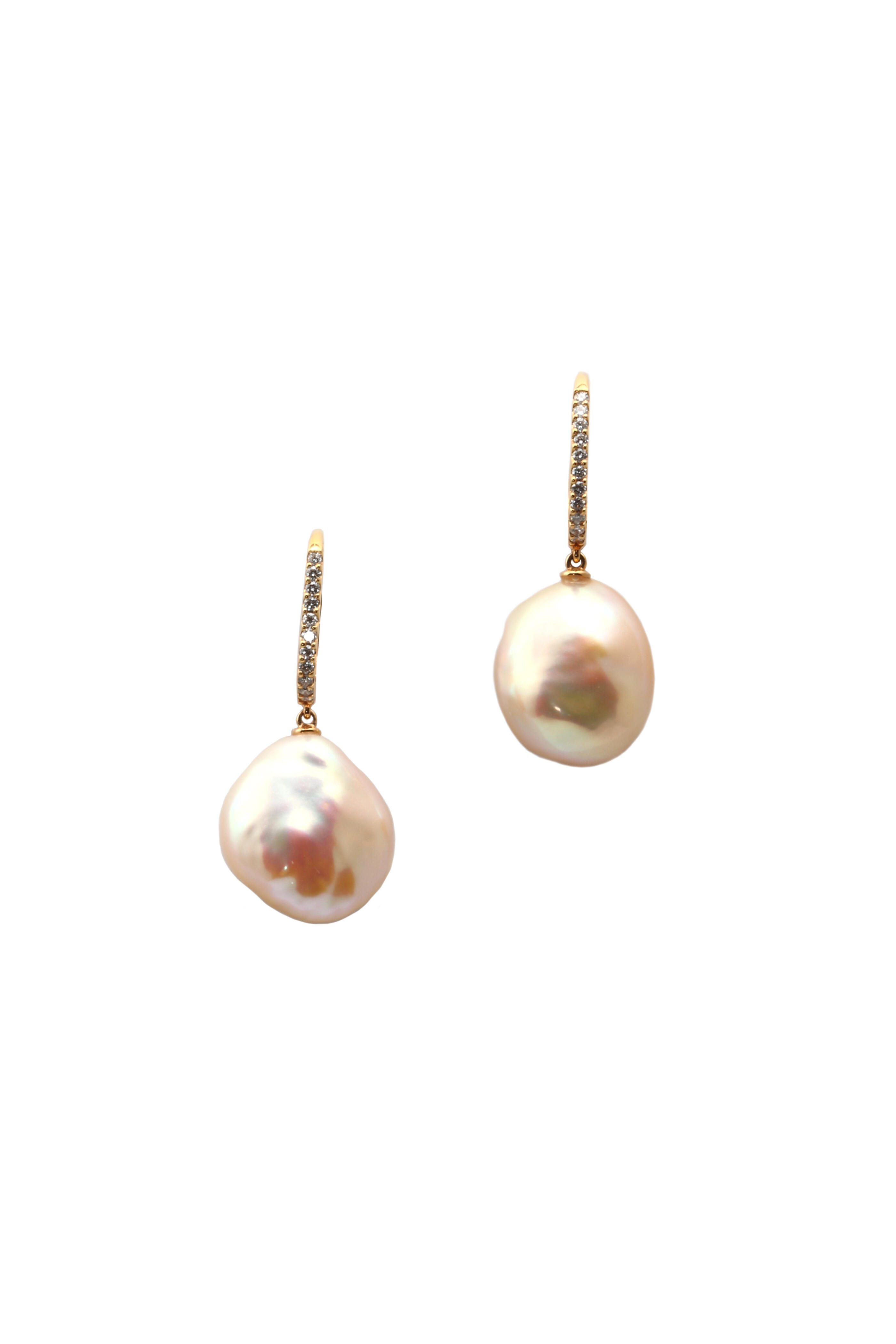 Gold Freshwater Baroque Pearl Diamond Earrings