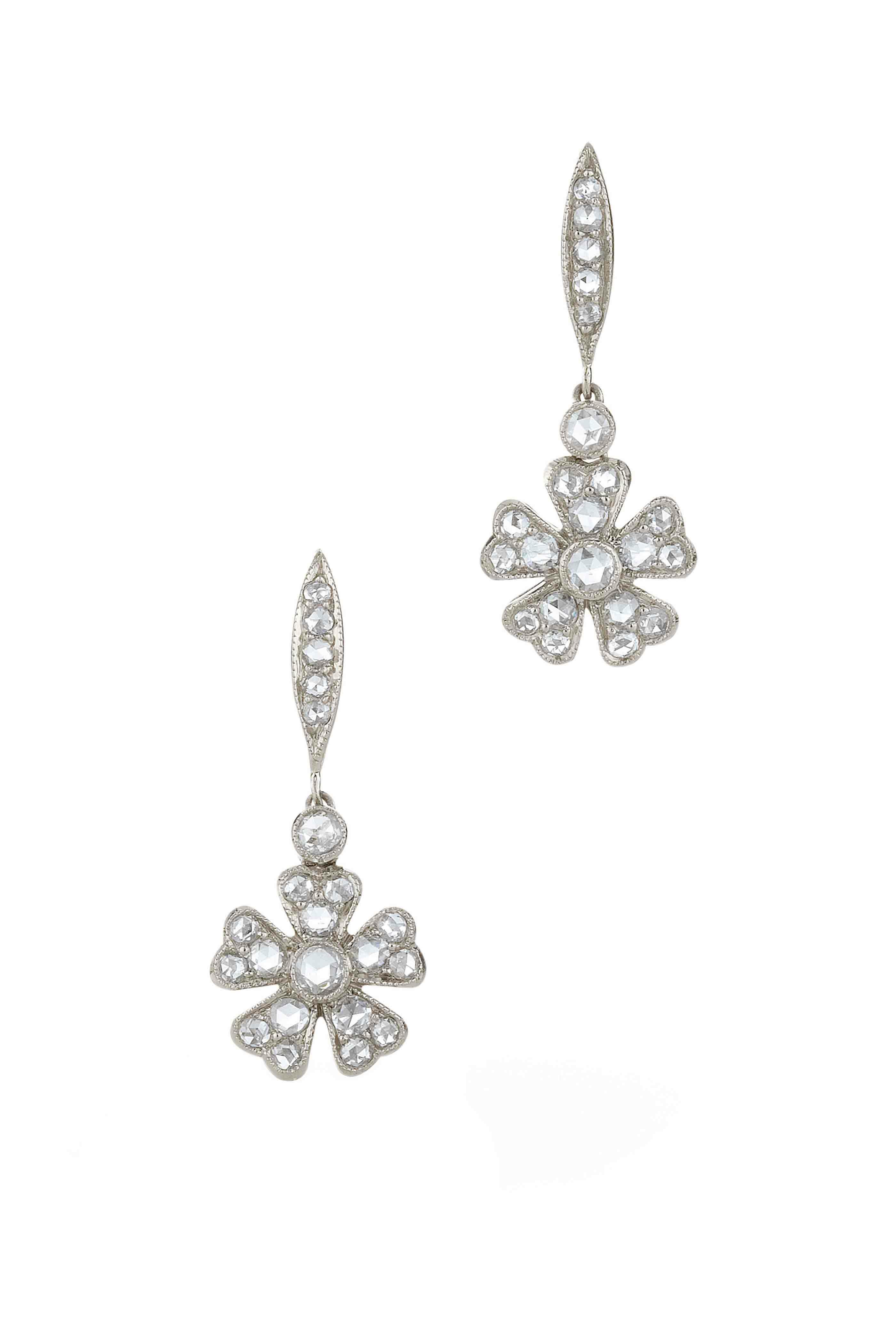 White Gold Diamond Flower Drop Earrings