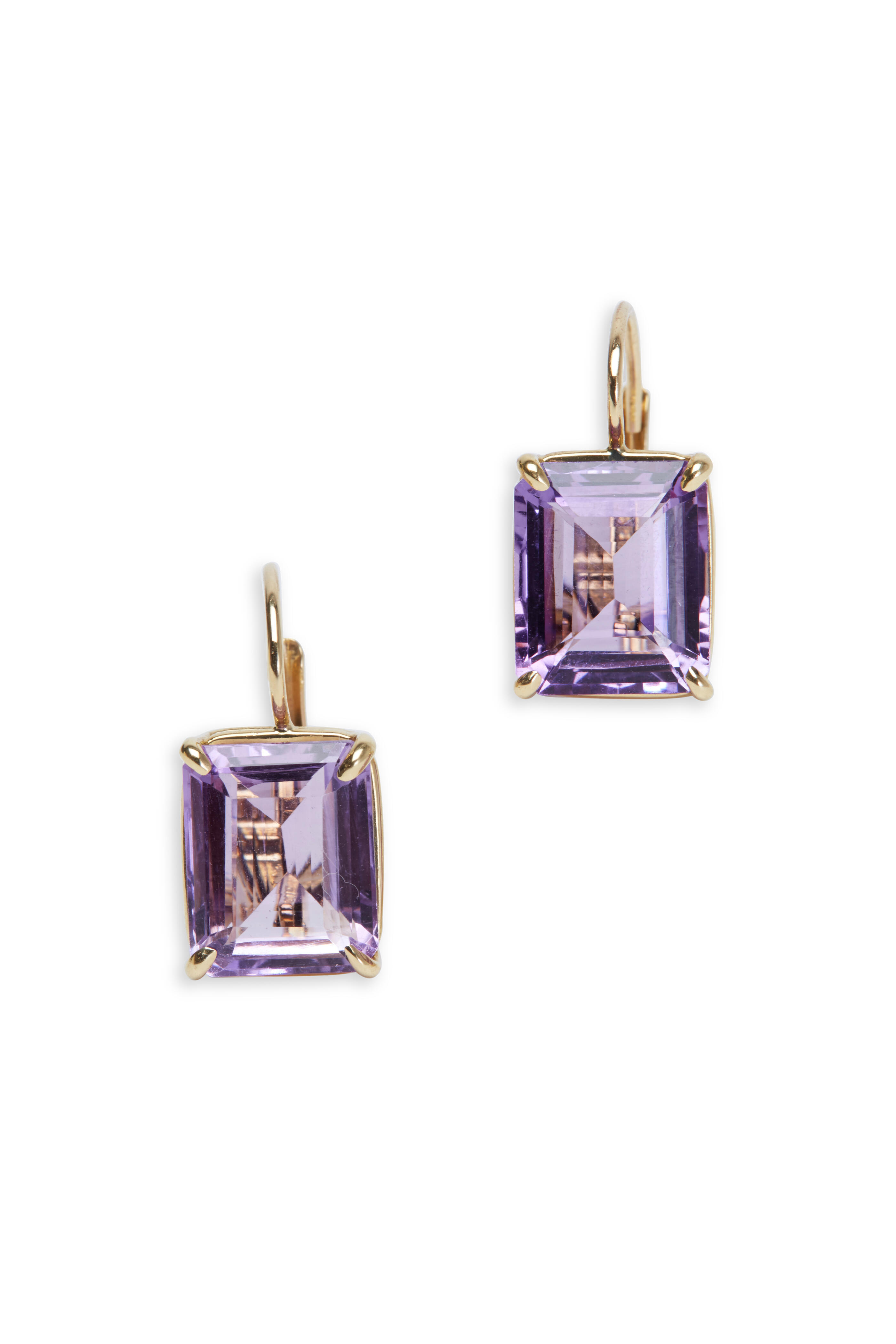 Yellow Gold Emerald-Cut Amethyst Earrings