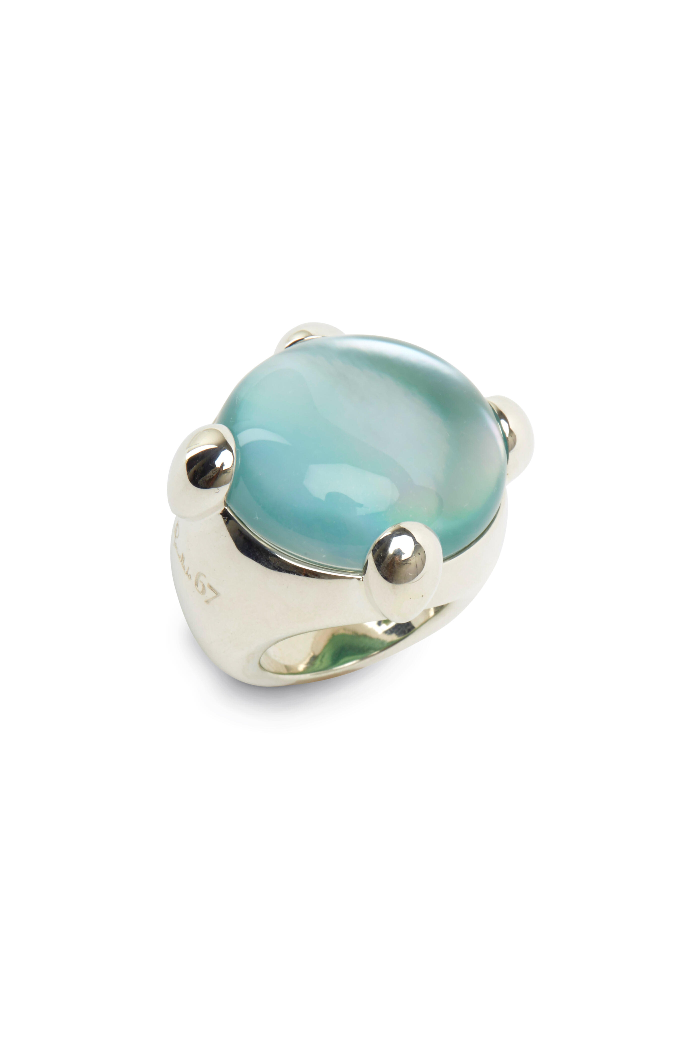 Embrace the heavenly hue of sky blue with this aqua gemstone ring. A celestial colored oval aqua of vivid color is set by four prongs in an icy sterling silver setting.