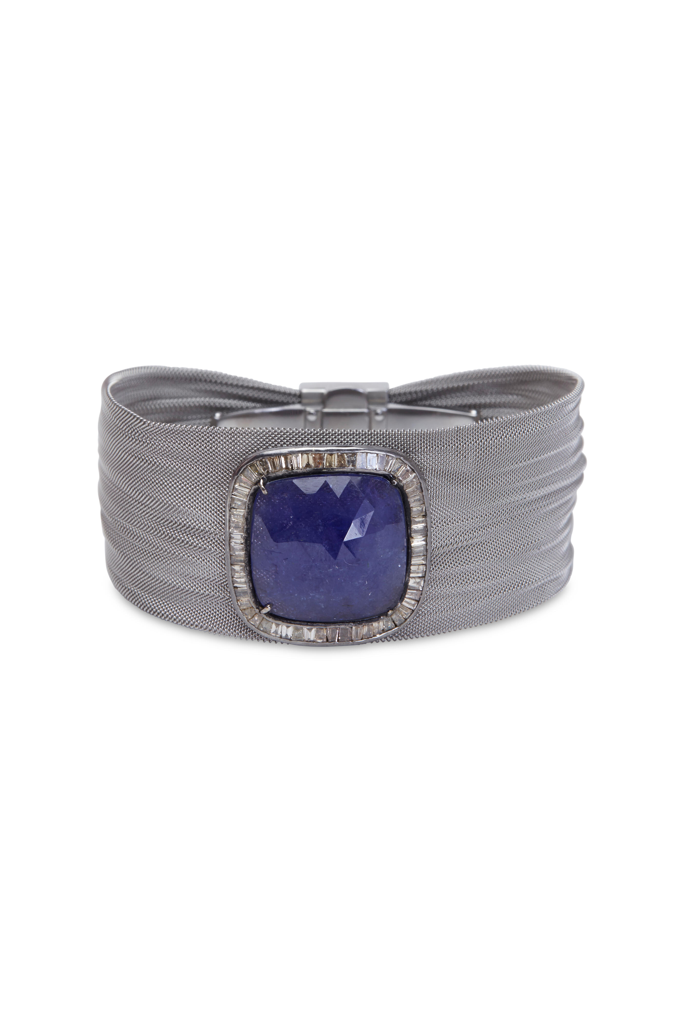 Silver Steel Mesh Tanzanite Diamond Bracelet