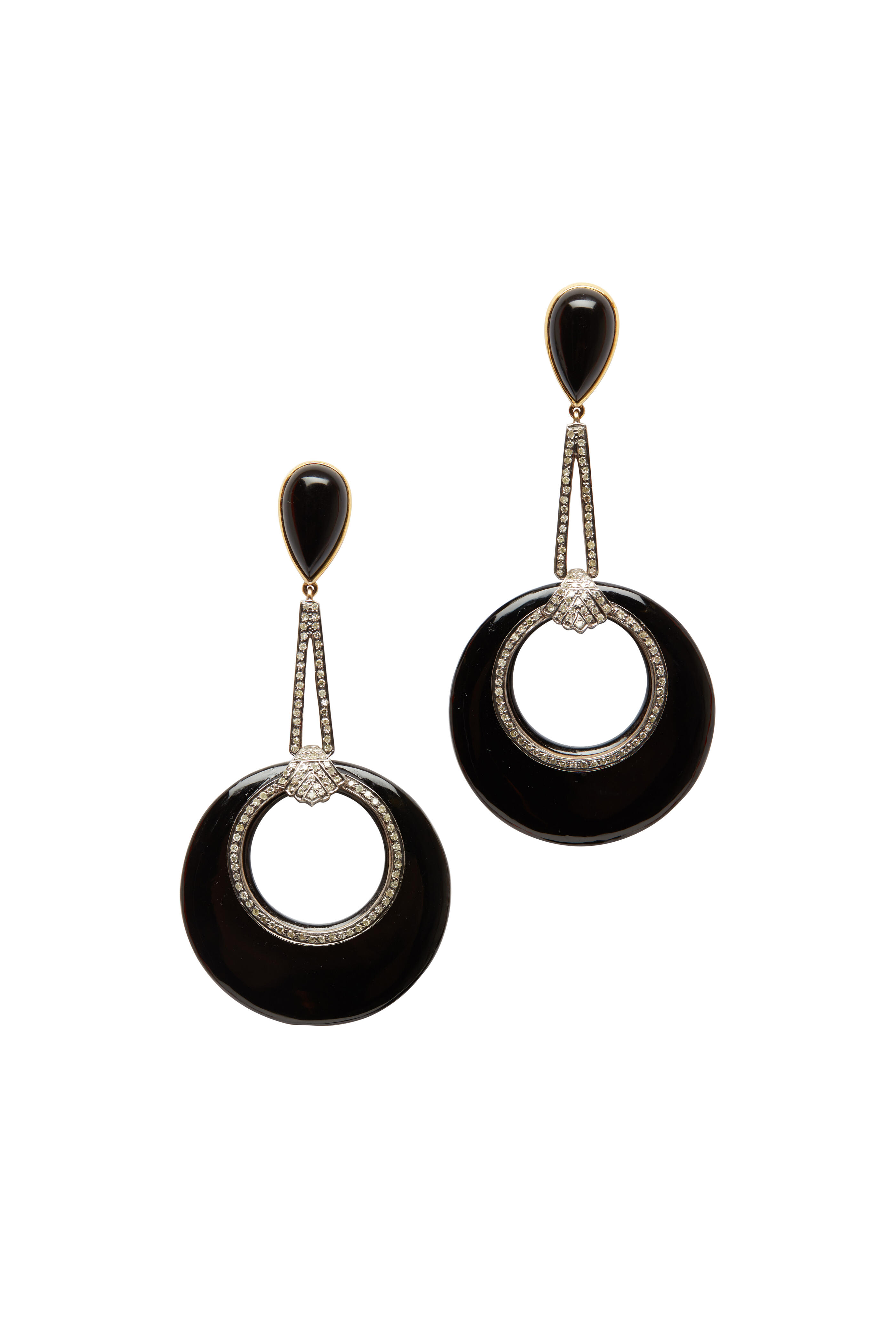 Gold & Silver Black Onyx Diamond Dangle Earrings