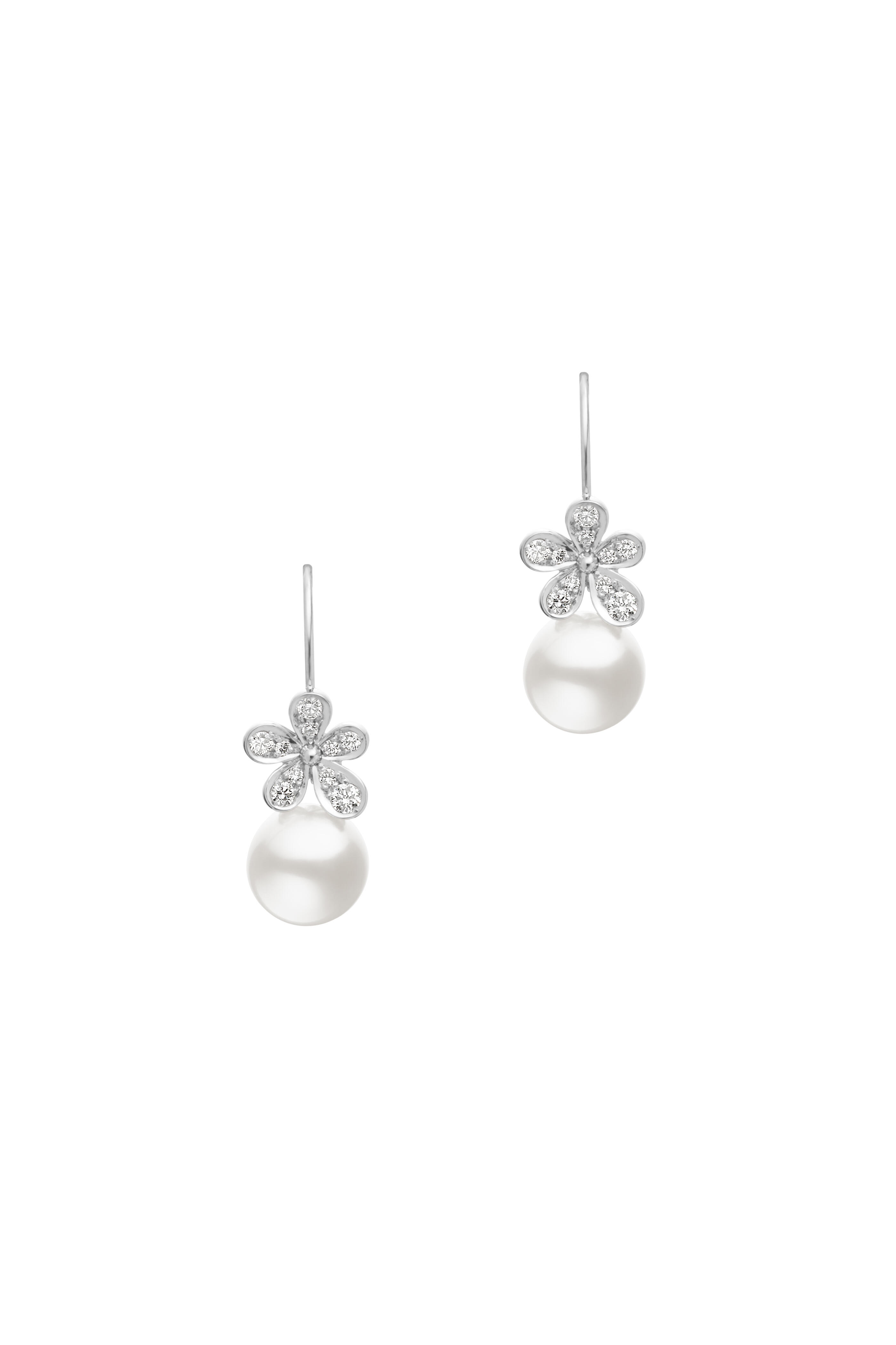 18k white gold. 11mm A+, South Sea white pearls. 0.54cts white diamonds.