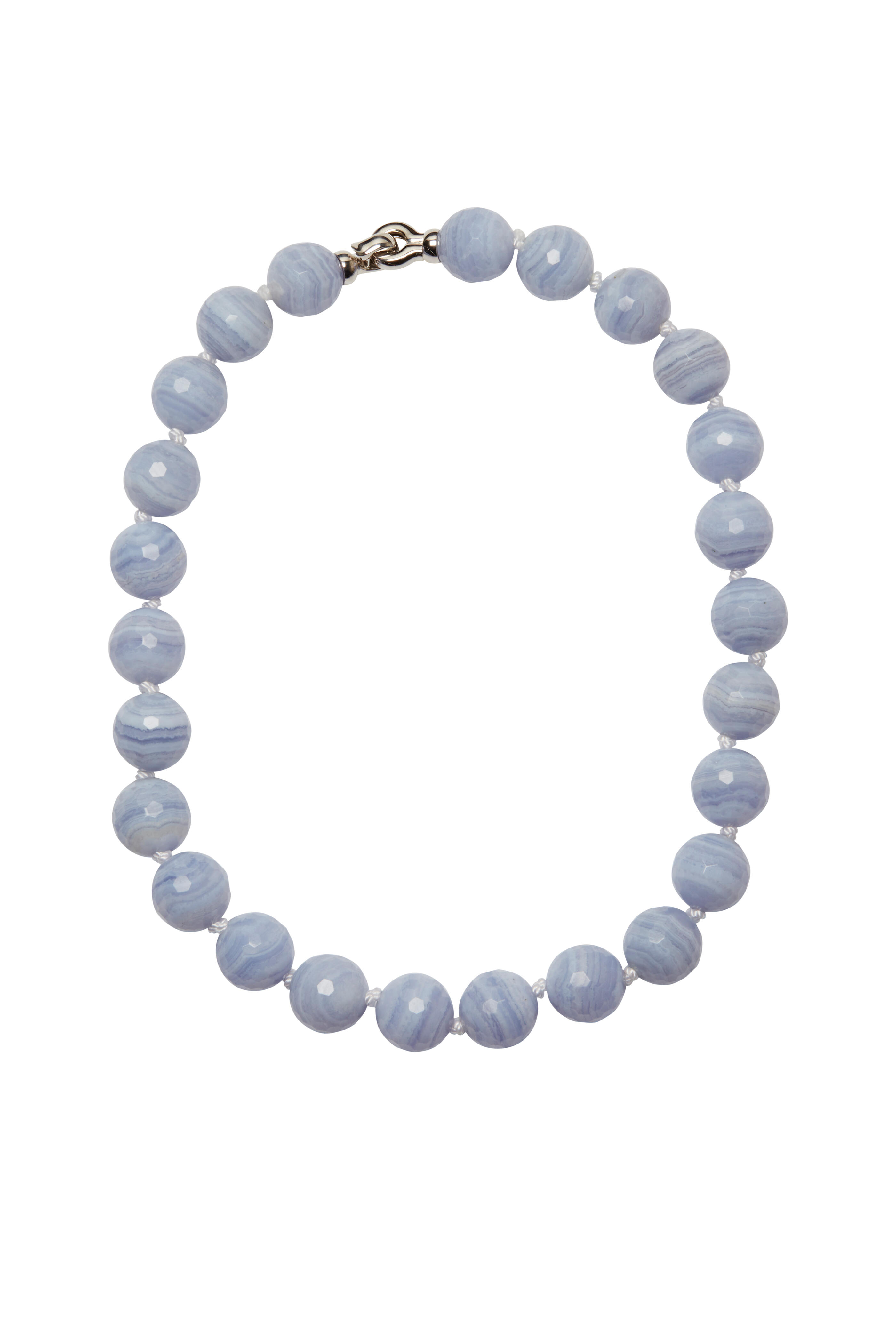 White Gold Blue Lace Agate Bead Necklace