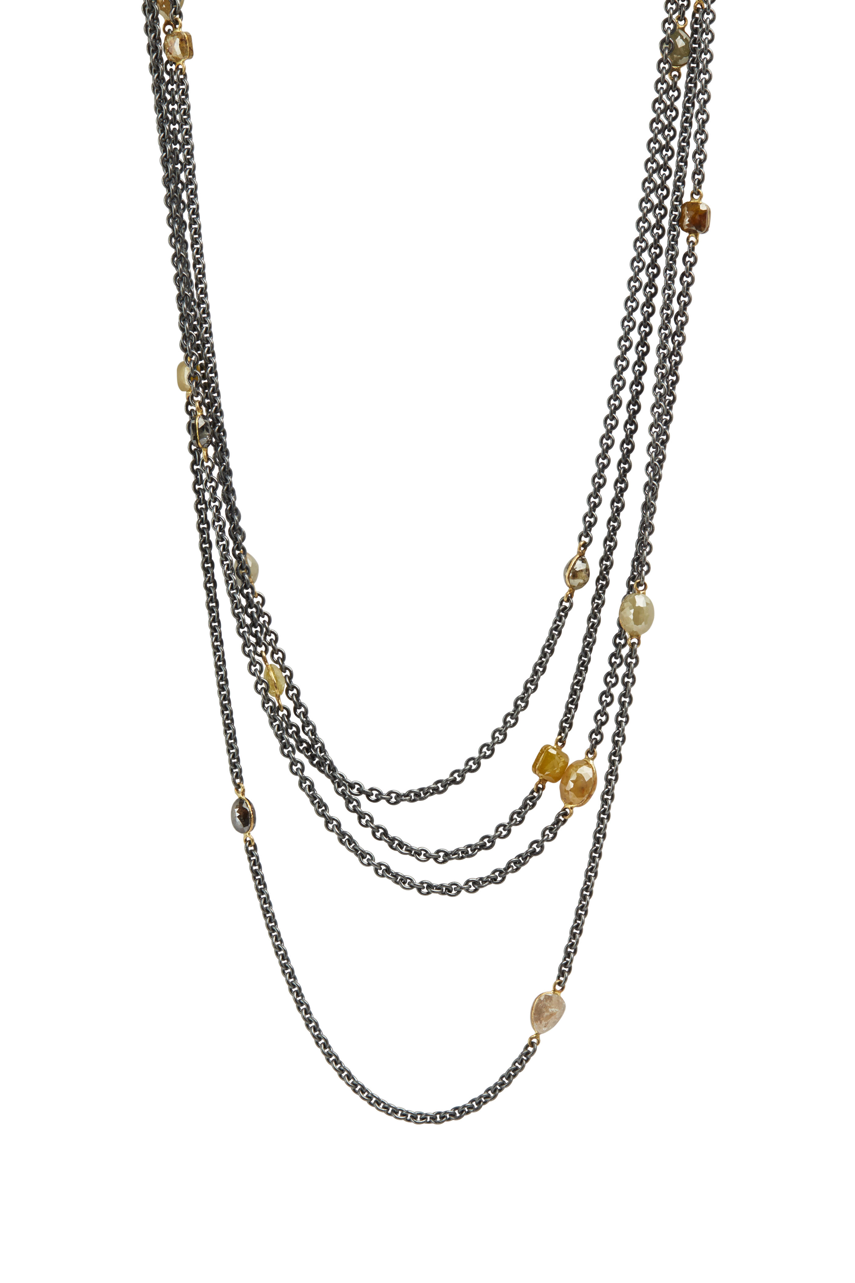 18k yellow gold & sterling silver. 37.225cts fancy-cut diamonds. 0.115cts raw diamond cubes. Chain necklace.