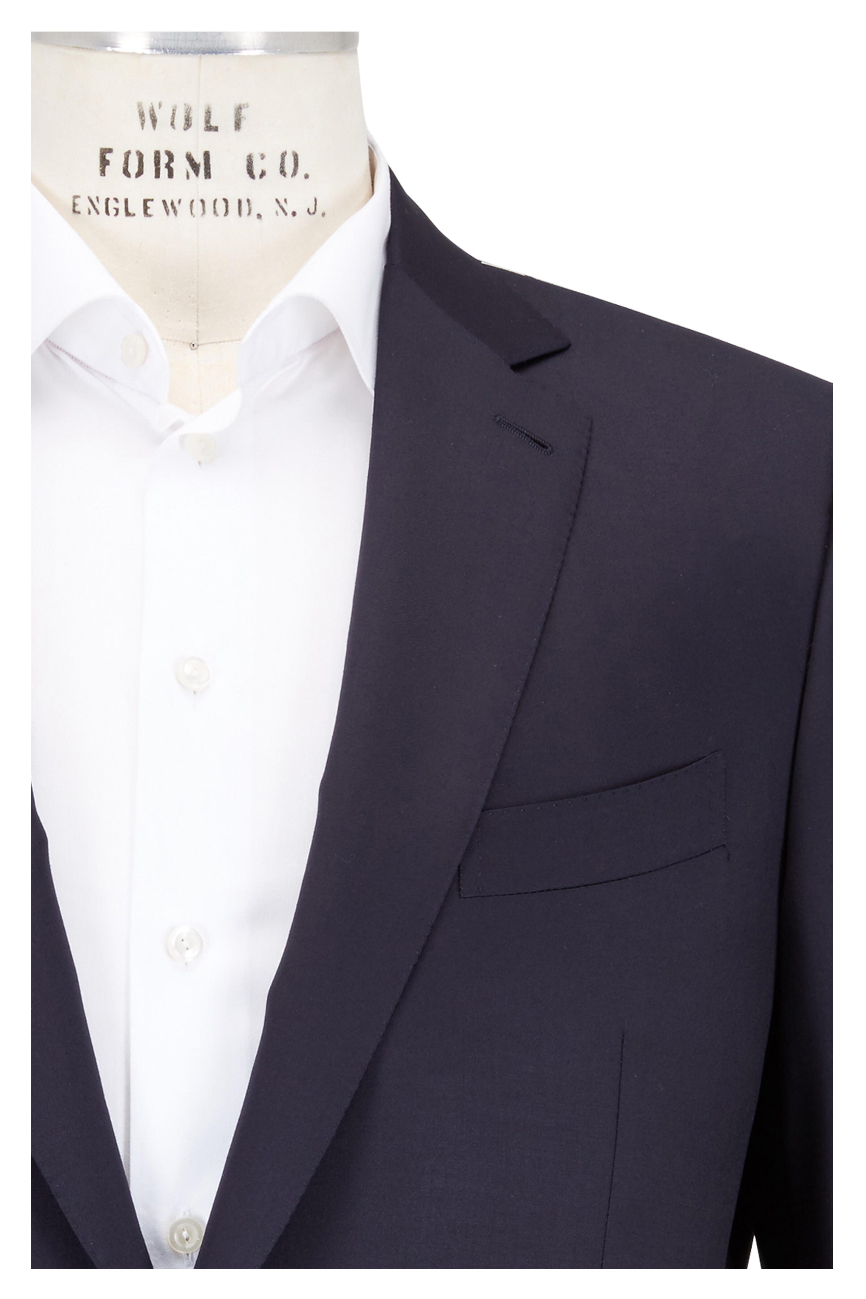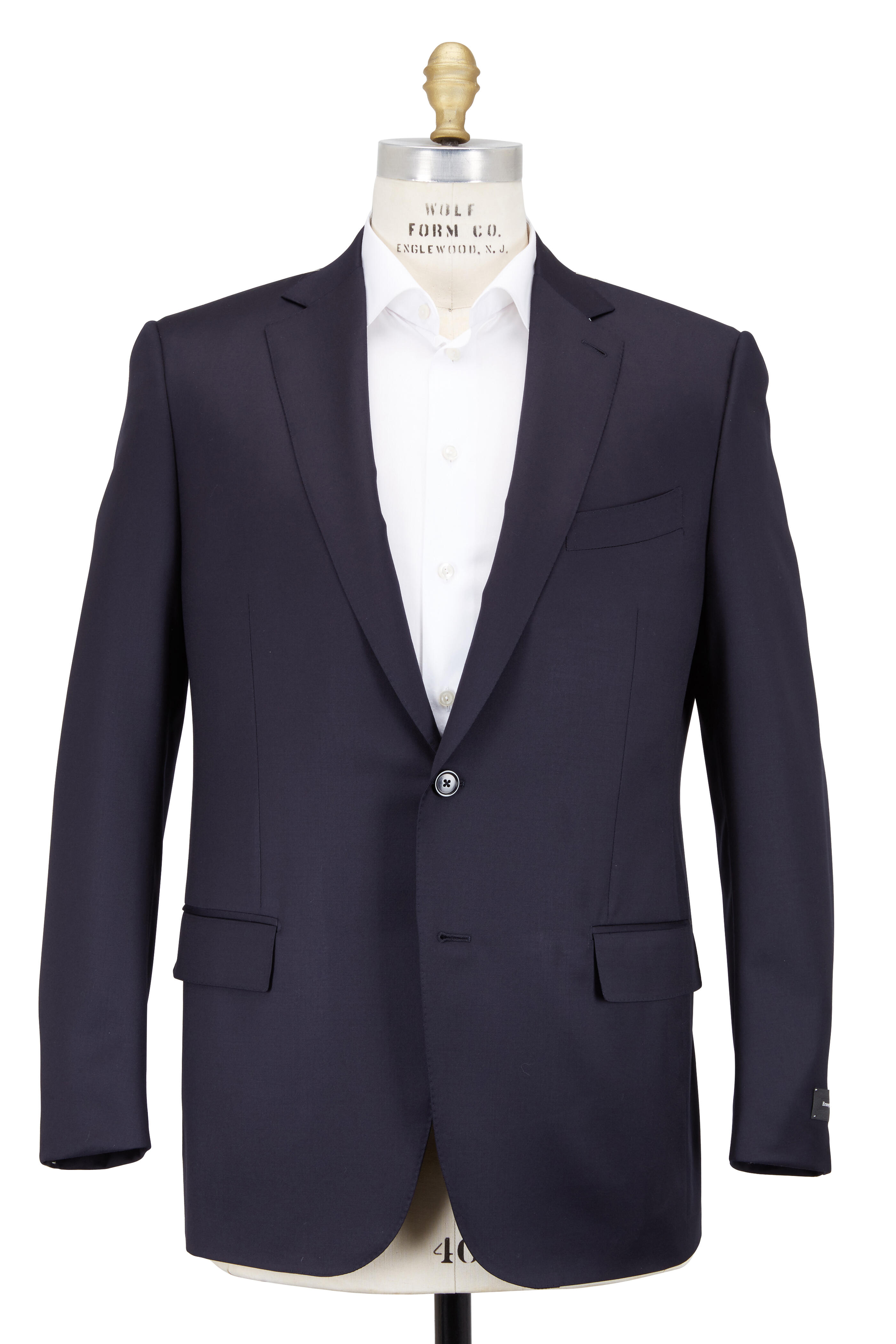 Made in Spain. Jacket: Fully lined. Notched lapels. Two button front closure. Chest welt pocket, one ticket pocket, lower front flap pockets. Double vent. Pants: Two side slash pockets, two back button-besom pockets. Unfinished hem. 100% wool. Dry clean.