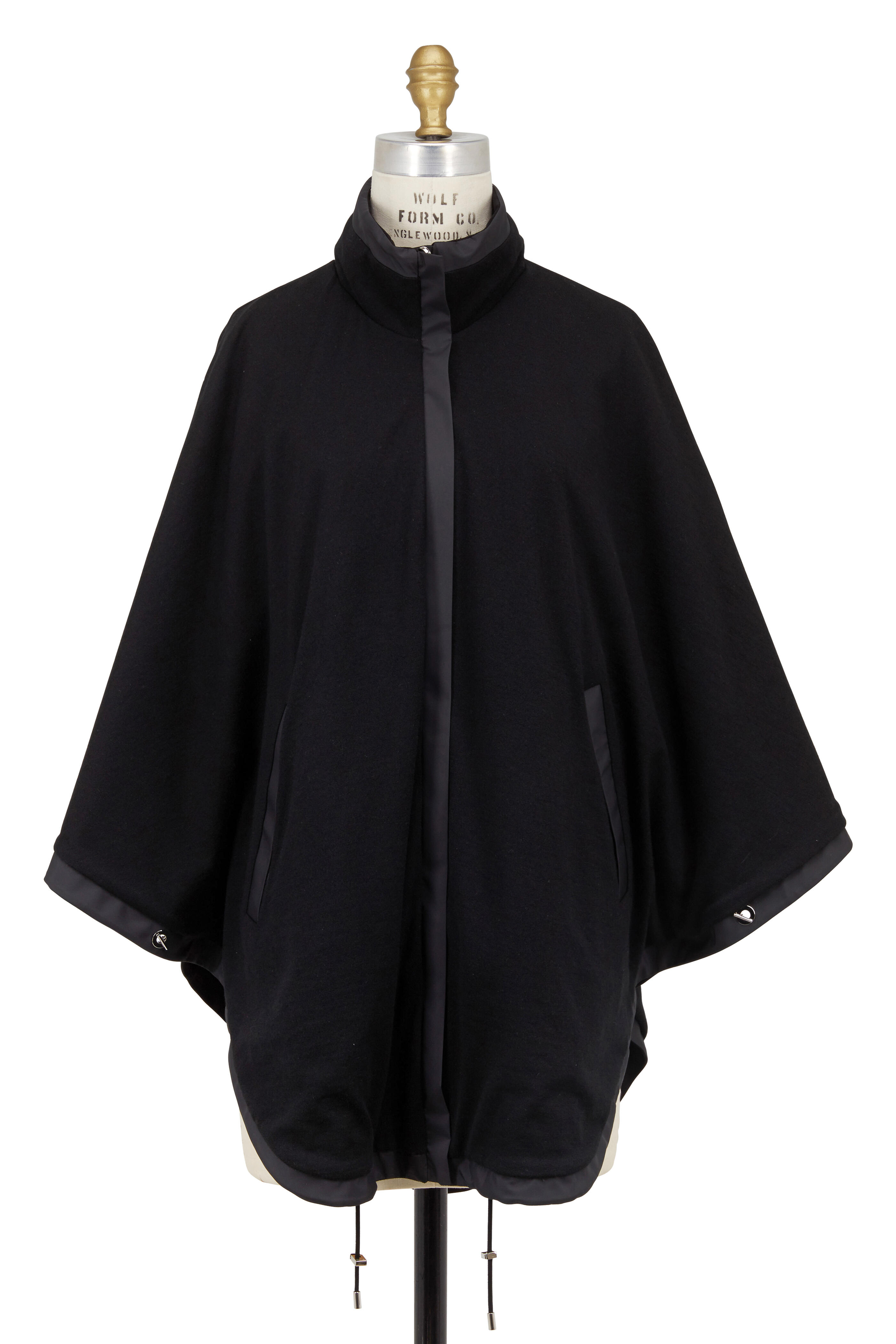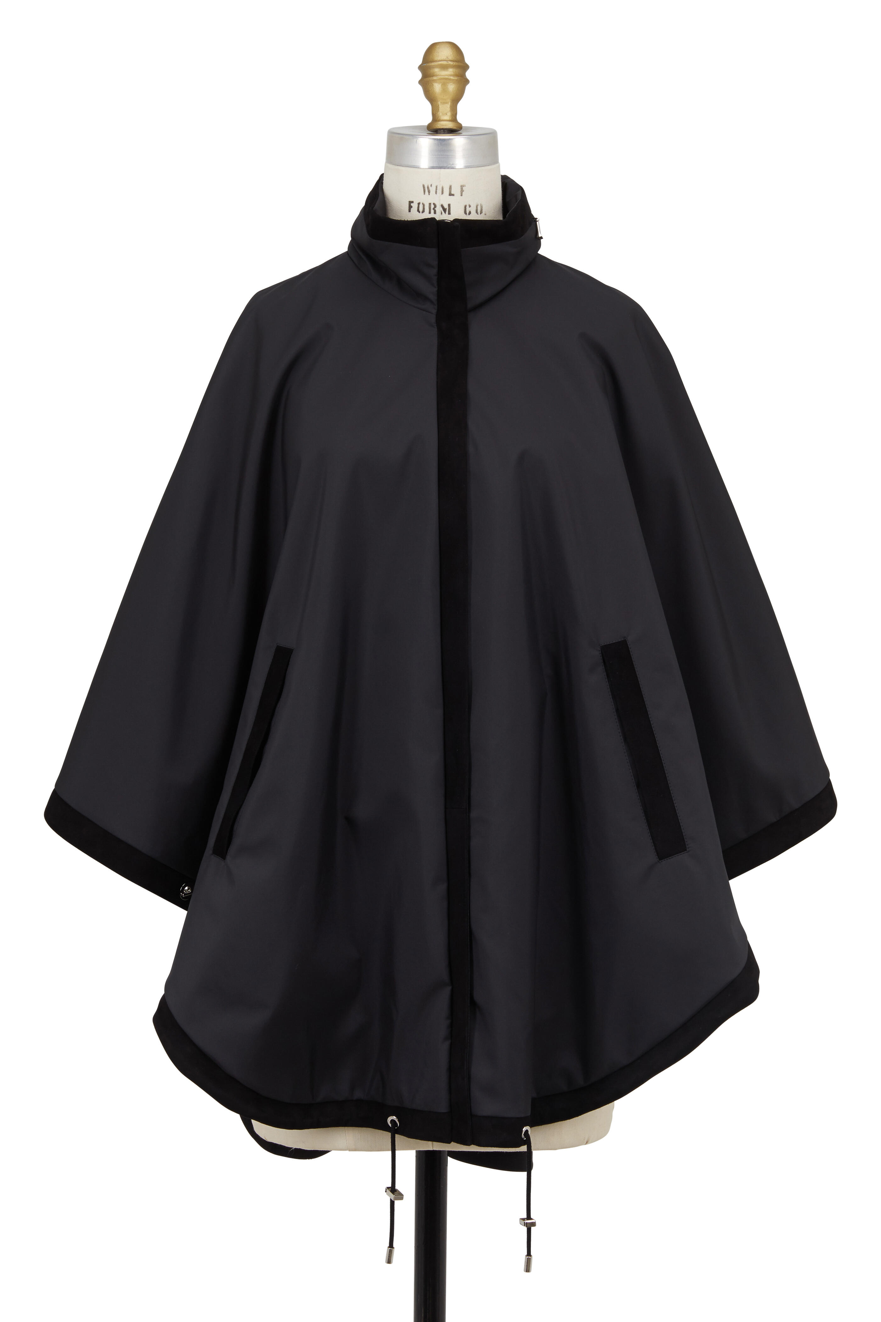 Body: cashmere, Storm System® tech fabric, suede. Specialist clean. Stand collar, fold-away hood. Concealed front zip. Two angled welt pockets. Drawstring hem. Suede trim. Made in Italy.