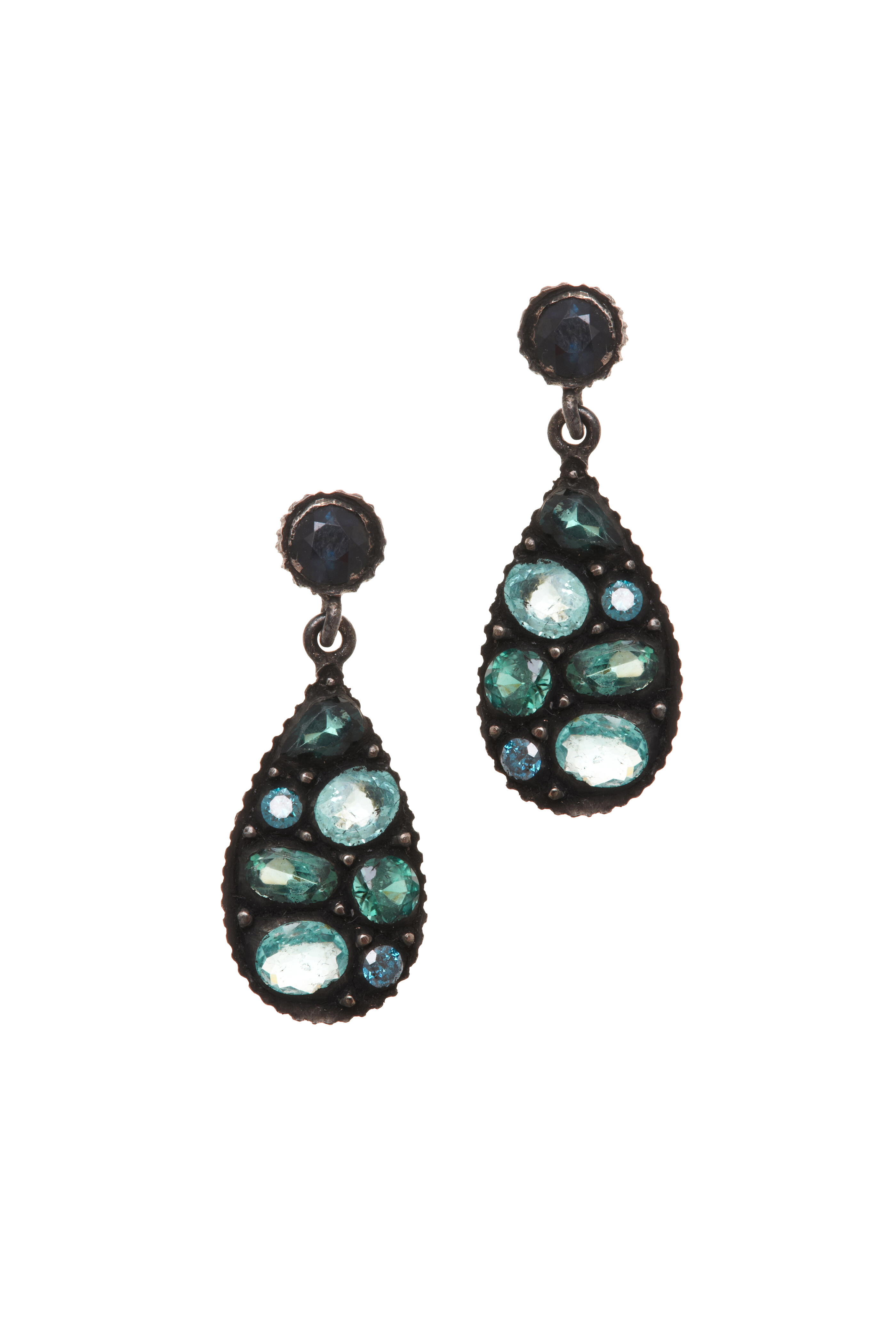 Sara Paraiba Tourmaline & Teal Diamond Earrings
