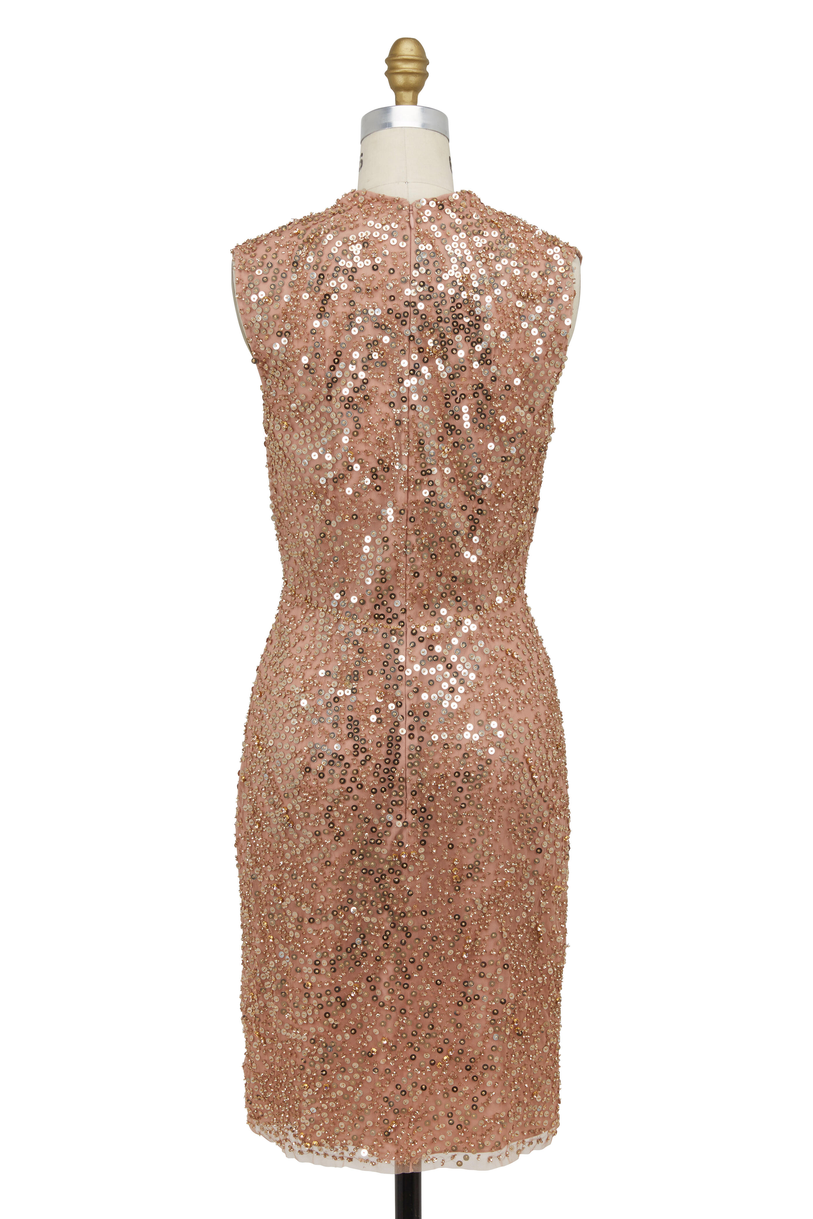 Beige Sequin Sleeveless Cocktail Dress